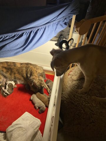 So ihr Lieben, in diesem Jahr öffnet sich die Wurfkiste zum dritten Mal. Ist schon fast unverschämt aber ich habe das schon bewusst gemacht. Für meine Zuchtstrategie musste es so sein und im nächsten Jahr wird es wieder überschaubarer. Wenn ihr mögt könnt ihr das Werden der kleinen Schätze wieder mit mir zusammen erleben. Es ist zwar eigentlich immer dasselbe und doch immer wieder was neues und wundervolles. Leider habe ich ein kleines Sorgenkind dabei, was Gott sei Dank schon jetzt auf dem richtigen Weg ist und ich hoffe in ein bis zwei Wochen ist alles vergessen. Alle werden schon richtig mopsig und lebendig und wie immer könnte ich sie alle behalten. Ich überlege allerdings tatsächlich noch ein Mädchen zu behalten um mir die Gene von dem lustigsten Clooney der Welt zu sichern, allerdings hatte ich eine andere Farbe bestellt. Die Farbe ist zwar dabei, nur hat der Schatz nicht da richtige Geschlecht. Mama Wilma, sonst der Chaot schlechthin, ist die Ruhe selbst und macht ihren Job richtig gut. Aber auch sie muss morgens und abends mit zu den Schafen und lässt von Tag eins an ihre Kinder mal für 20 Minuten alleine. Bitte drückt alle die Daumen für den kleinen Schatz, er kann es noch brauchen.