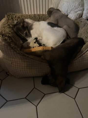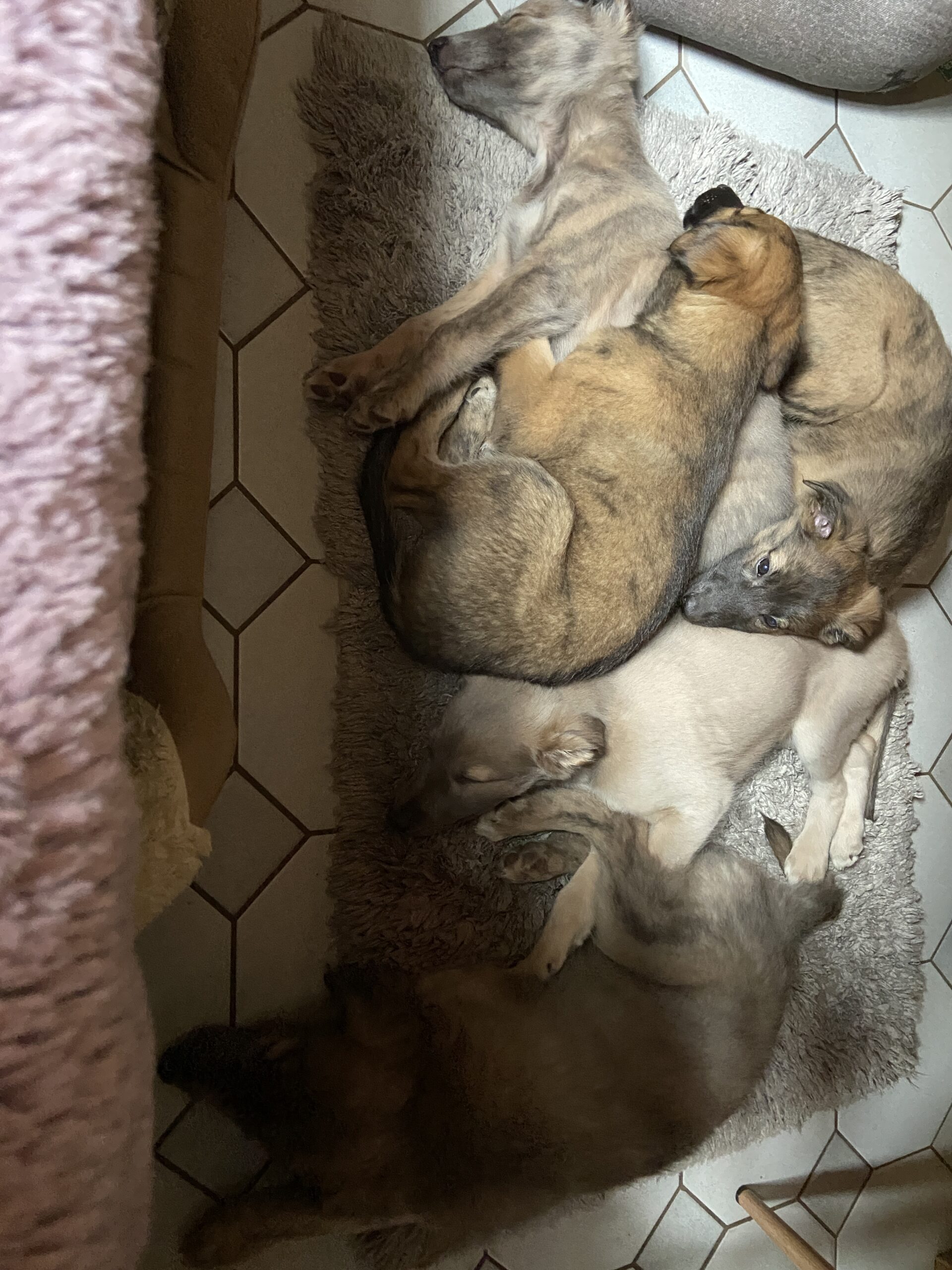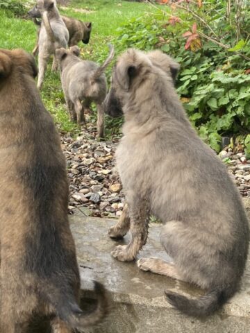 Diese Woche war ein bisschen die Woche der ersten Erziehung. Nein pfui und aus sind ziemlich oft gefallen und es hat auch Früchte getragen….wir haben es verstanden…….meisten!!?? Dieser Wurf ist wirklich ein sehr lieber und ausgeglichener Wurf. Sie sind zwar viel draußen unterwegs und machen da auch Unsinn aber alles im grünen Bereich. Hier im Haus gibt es kaum was, was sie in Angriff genommen haben, nicht mal meinen Korb für das Feuerholz. Draußen wird aber ordentlich getobt und sie haben viel Spaß. Zwischendurch kommt immer mal einer rein um zu schauen ob ich noch da bin, es ist einfach zu süß. Jetzt gerade liegt der erste schon wieder auf meinen Füßen. Ich denke der Rest wird auch langsam wieder eintrudeln für ein Powernapping. Leider kann ich mit ihnen nicht durch den Urwald spazieren, dort ist zur Zeit tatsächlich richtiger Urwald und ich komme nicht durch. Bis zum Reitplatz geht aber immer. So langsam kommen die Persönlichkeiten zum Vorschein und die sind alle nett. Der eine was forsch der andere etwas zurückhaltender und alle zusammen einfach nur zum verlieben. Zum Abschluss der Woche wird noch geimpft und gechipt und danach sind sie fertig für den Abschied. Ich kenne fünf Familien die sich riesig freuen und einen mit einer kleinen Träne im Auge. Diese letzte Woche werde ich genießen und morgen den ersten Schatz verabschieden. Ich wünsche allen Schätzen und den neuen Familien ganz viel Freude und eine lange gemeinsame Zeit und hoffe natürlich auch bei diesen fünf Schätzen auf ein Wiedersehen. Macht es gut !!!!