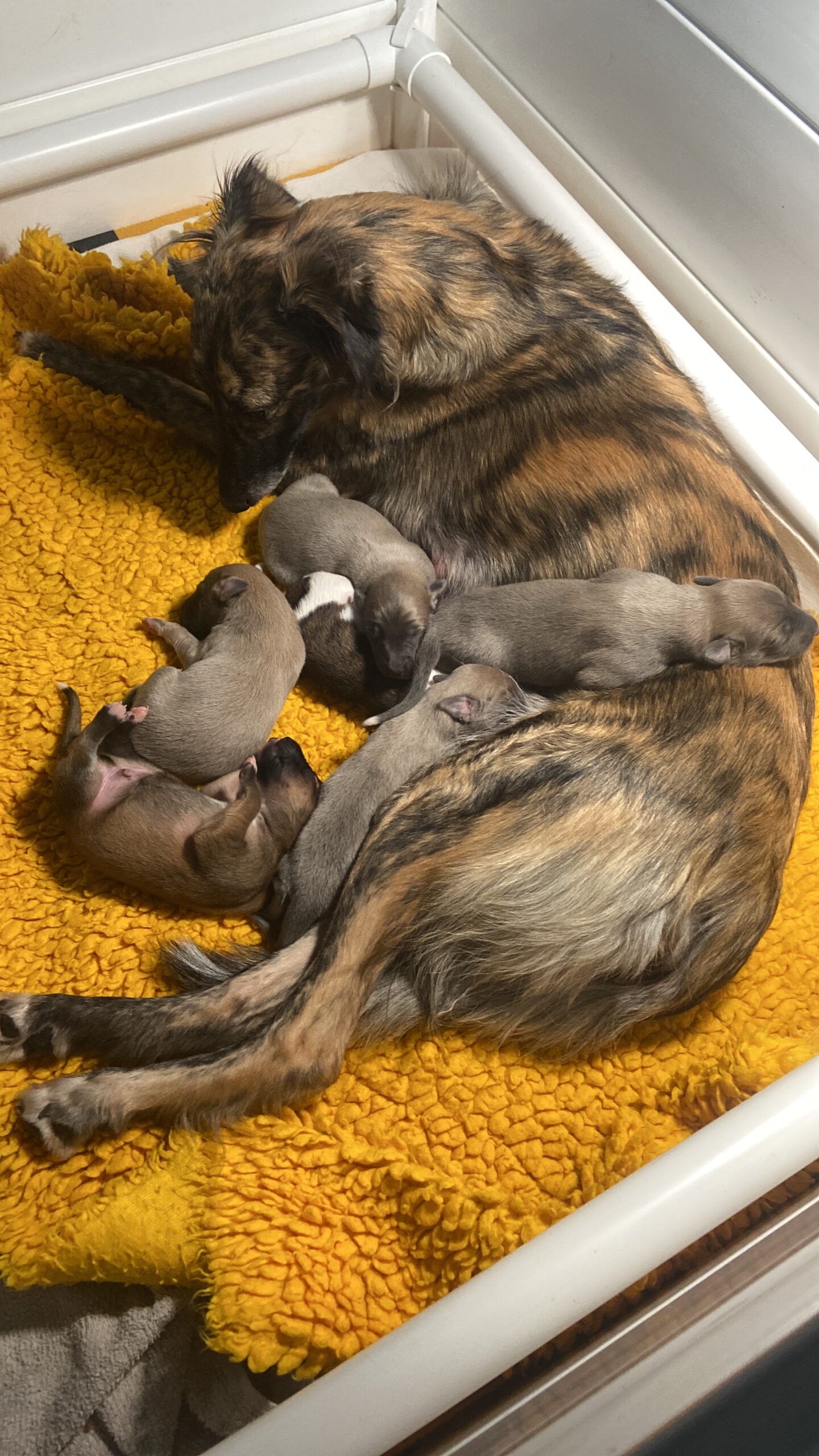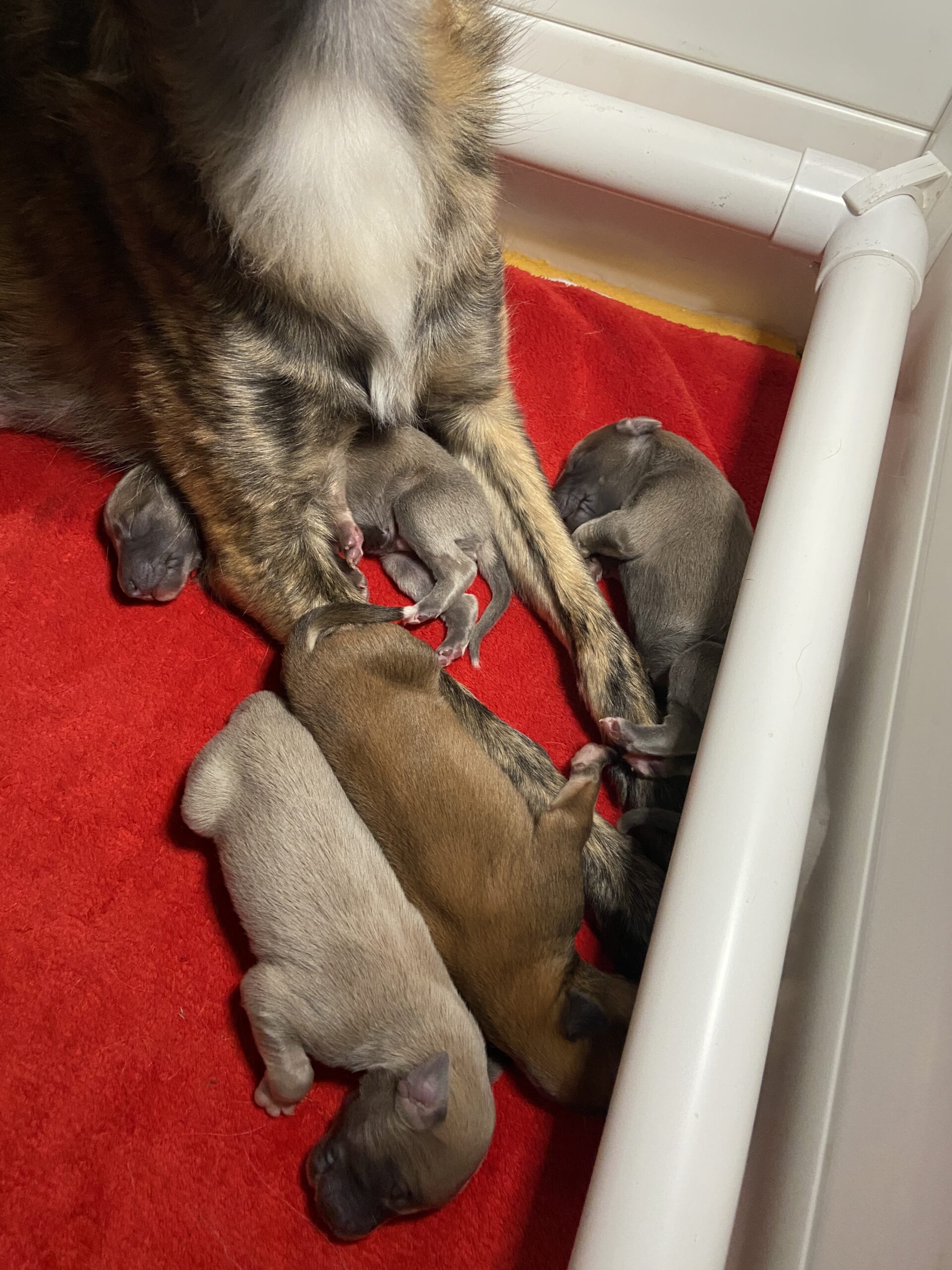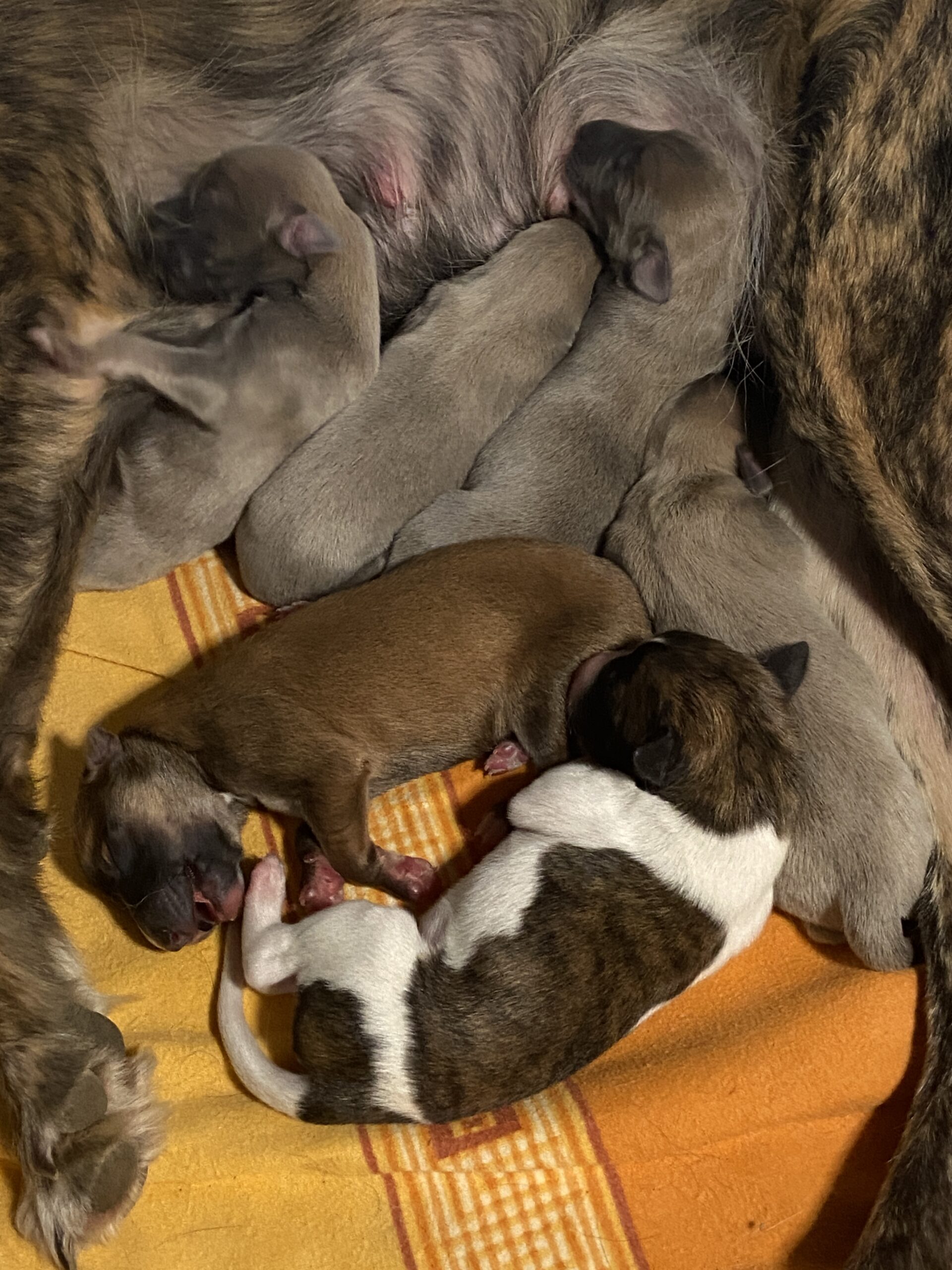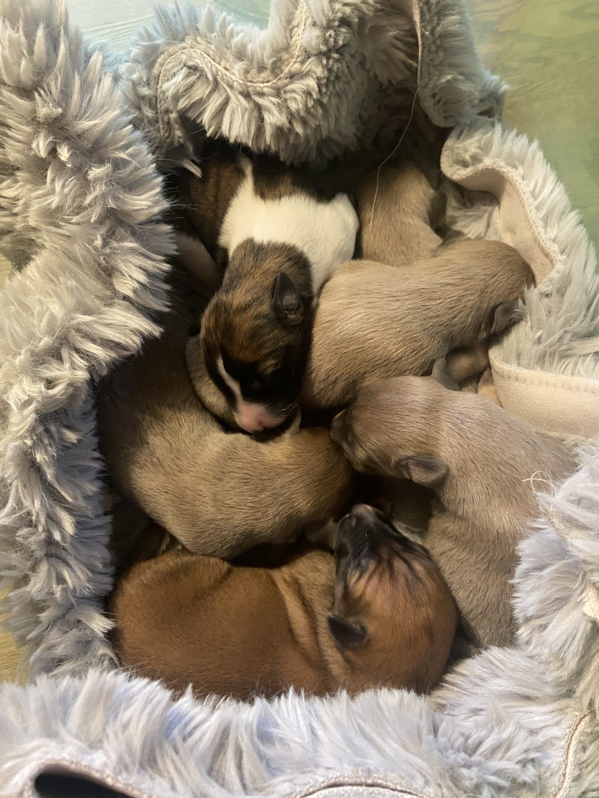 So ihr Lieben, in diesem Jahr öffnet sich die Wurfkiste zum dritten Mal. Ist schon fast unverschämt aber ich habe das schon bewusst gemacht. Für meine Zuchtstrategie musste es so sein und im nächsten Jahr wird es wieder überschaubarer. Wenn ihr mögt könnt ihr das Werden der kleinen Schätze wieder mit mir zusammen erleben. Es ist zwar eigentlich immer dasselbe und doch immer wieder was neues und wundervolles. Leider habe ich ein kleines Sorgenkind dabei, was Gott sei Dank schon jetzt auf dem richtigen Weg ist und ich hoffe in ein bis zwei Wochen ist alles vergessen. Alle werden schon richtig mopsig und lebendig und wie immer könnte ich sie alle behalten. Ich überlege allerdings tatsächlich noch ein Mädchen zu behalten um mir die Gene von dem lustigsten Clooney der Welt zu sichern, allerdings hatte ich eine andere Farbe bestellt. Die Farbe ist zwar dabei, nur hat der Schatz nicht da richtige Geschlecht. Mama Wilma, sonst der Chaot schlechthin, ist die Ruhe selbst und macht ihren Job richtig gut. Aber auch sie muss morgens und abends mit zu den Schafen und lässt von Tag eins an ihre Kinder mal für 20 Minuten alleine. Bitte drückt alle die Daumen für den kleinen Schatz, er kann es noch brauchen.