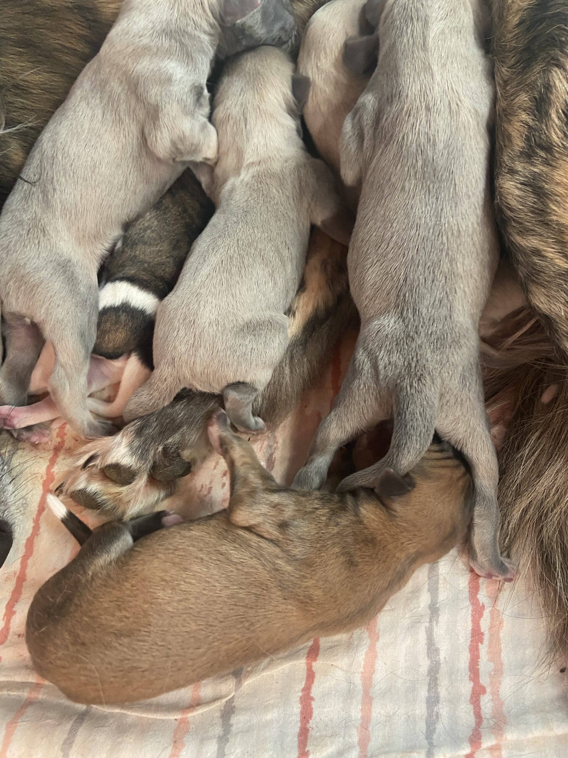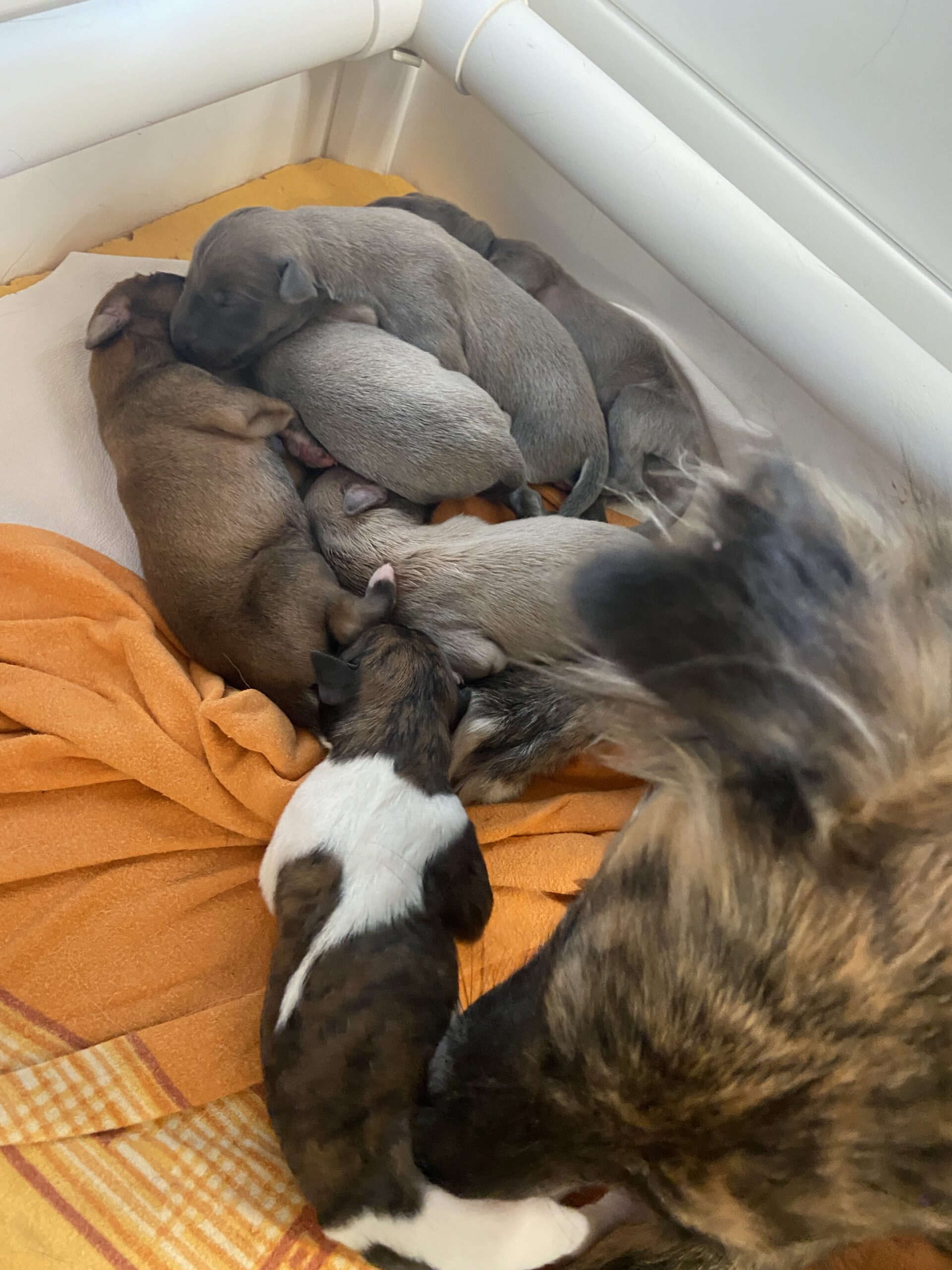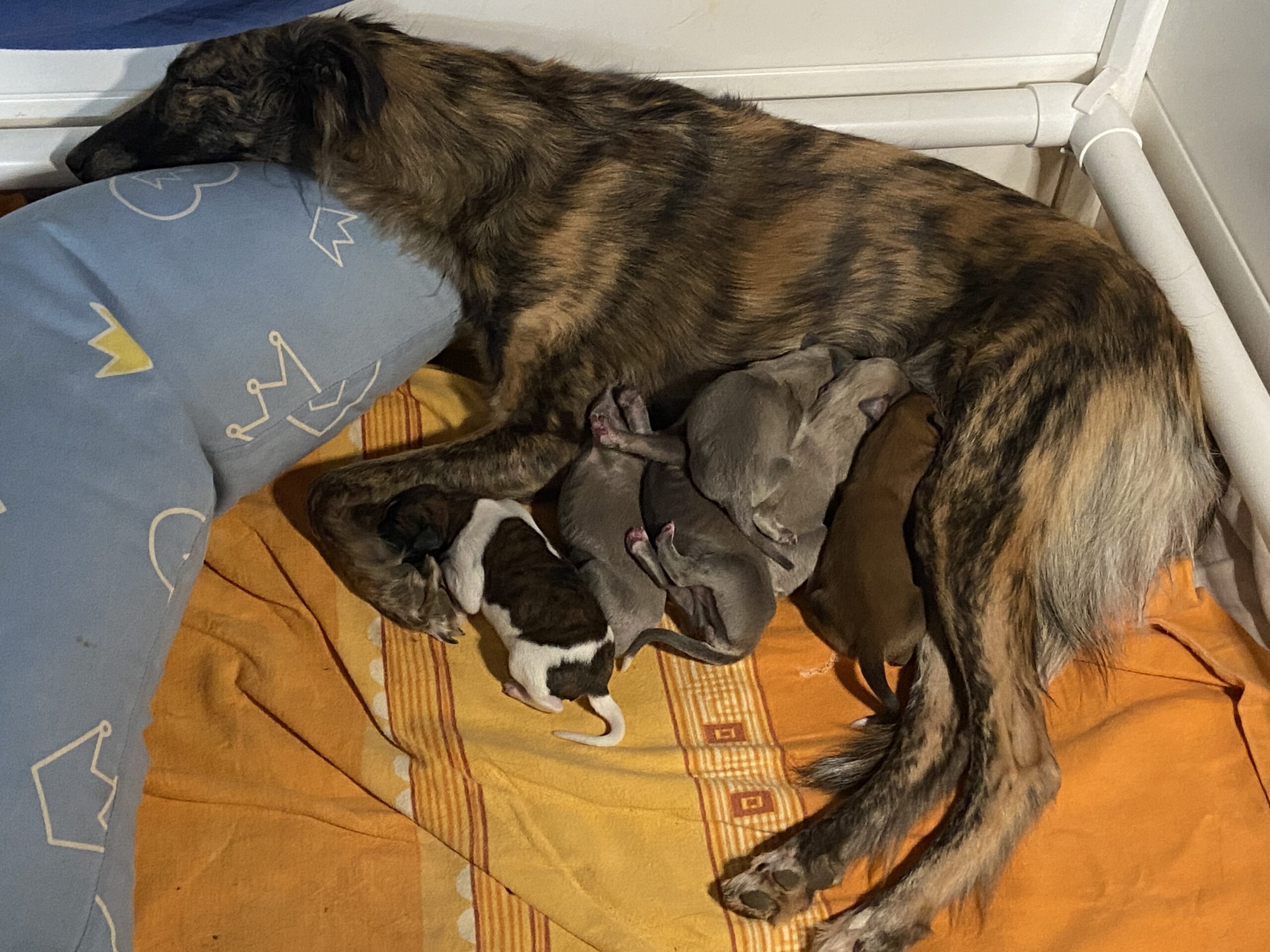 So ihr Lieben, in diesem Jahr öffnet sich die Wurfkiste zum dritten Mal. Ist schon fast unverschämt aber ich habe das schon bewusst gemacht. Für meine Zuchtstrategie musste es so sein und im nächsten Jahr wird es wieder überschaubarer. Wenn ihr mögt könnt ihr das Werden der kleinen Schätze wieder mit mir zusammen erleben. Es ist zwar eigentlich immer dasselbe und doch immer wieder was neues und wundervolles. Leider habe ich ein kleines Sorgenkind dabei, was Gott sei Dank schon jetzt auf dem richtigen Weg ist und ich hoffe in ein bis zwei Wochen ist alles vergessen. Alle werden schon richtig mopsig und lebendig und wie immer könnte ich sie alle behalten. Ich überlege allerdings tatsächlich noch ein Mädchen zu behalten um mir die Gene von dem lustigsten Clooney der Welt zu sichern, allerdings hatte ich eine andere Farbe bestellt. Die Farbe ist zwar dabei, nur hat der Schatz nicht da richtige Geschlecht. Mama Wilma, sonst der Chaot schlechthin, ist die Ruhe selbst und macht ihren Job richtig gut. Aber auch sie muss morgens und abends mit zu den Schafen und lässt von Tag eins an ihre Kinder mal für 20 Minuten alleine. Bitte drückt alle die Daumen für den kleinen Schatz, er kann es noch brauchen.