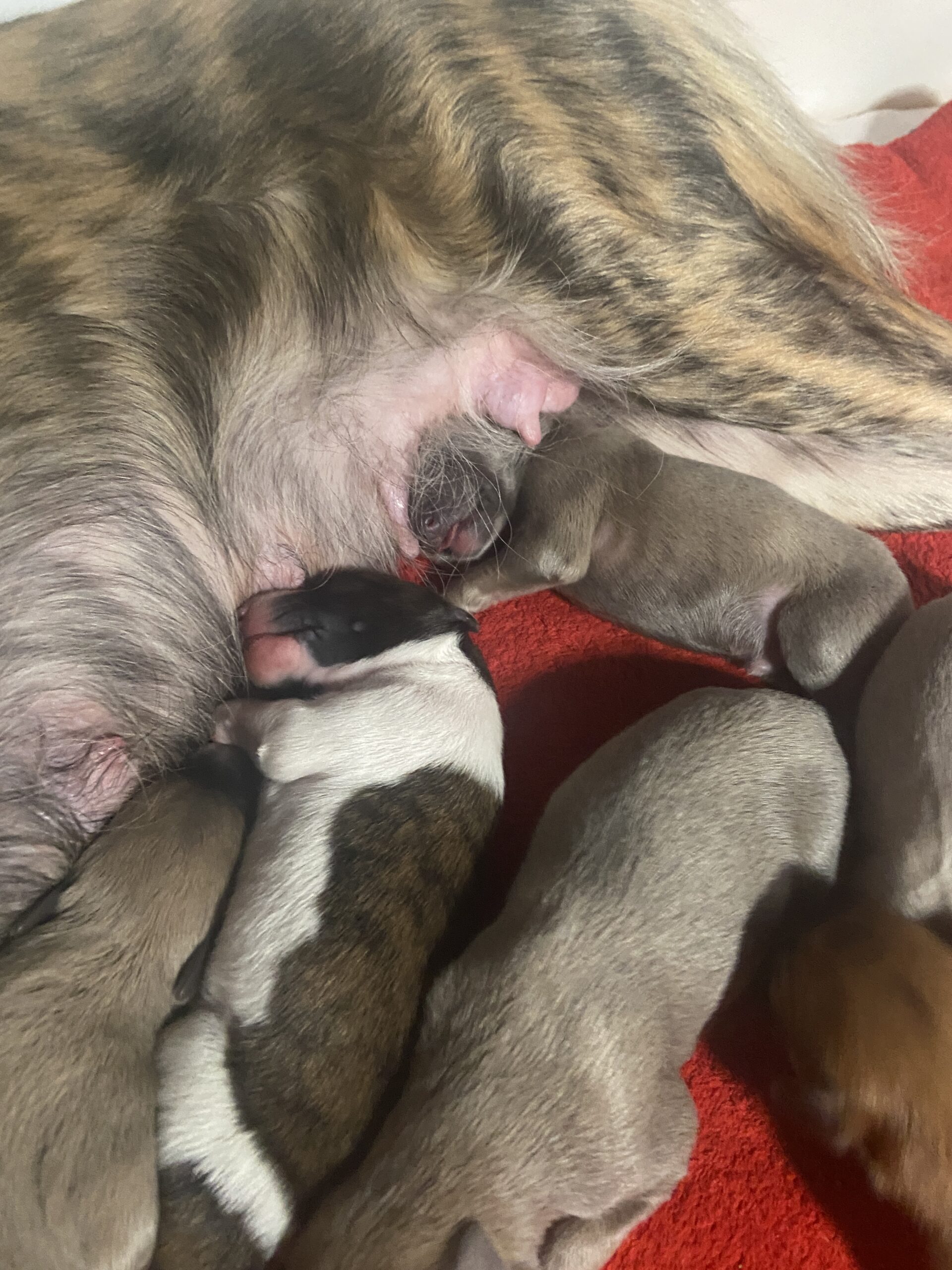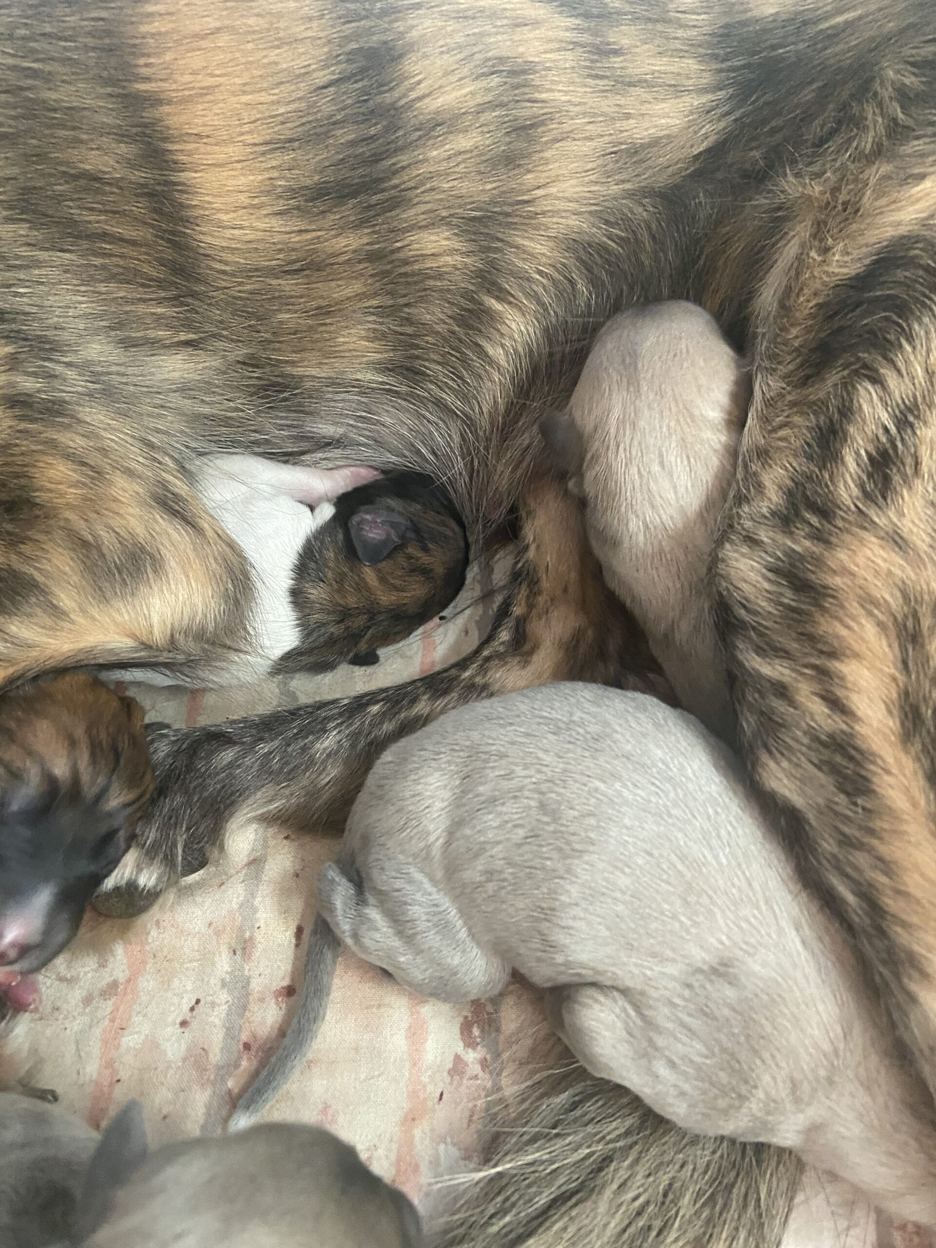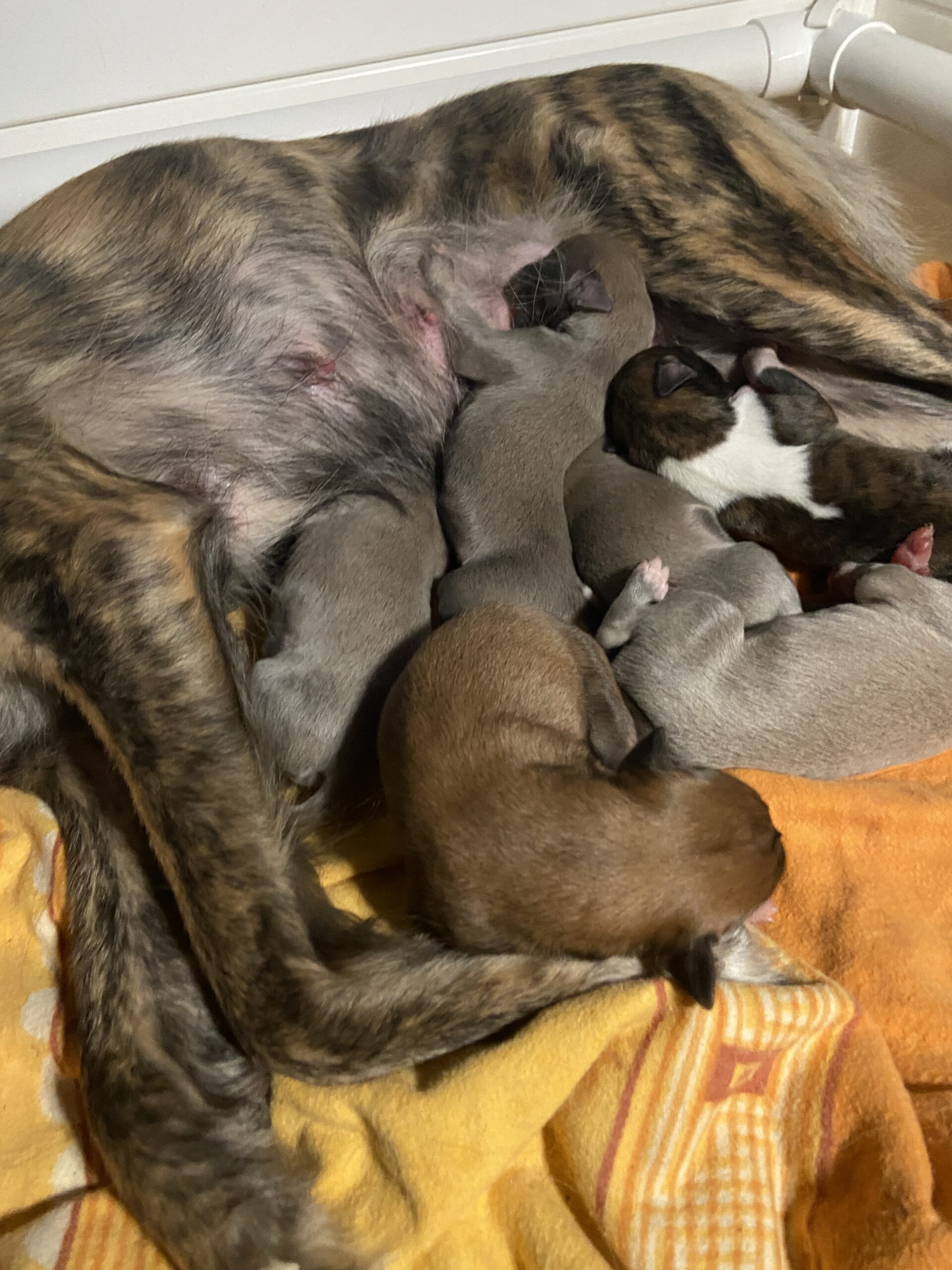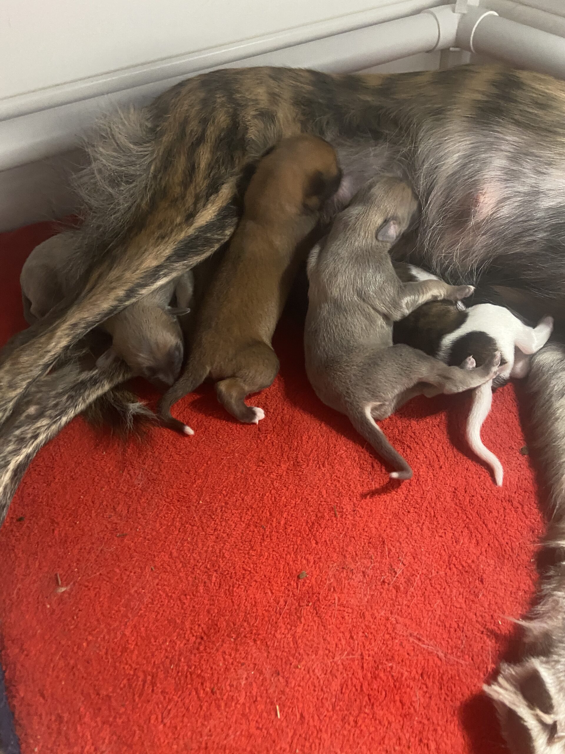So ihr Lieben, in diesem Jahr öffnet sich die Wurfkiste zum dritten Mal. Ist schon fast unverschämt aber ich habe das schon bewusst gemacht. Für meine Zuchtstrategie musste es so sein und im nächsten Jahr wird es wieder überschaubarer. Wenn ihr mögt könnt ihr das Werden der kleinen Schätze wieder mit mir zusammen erleben. Es ist zwar eigentlich immer dasselbe und doch immer wieder was neues und wundervolles. Leider habe ich ein kleines Sorgenkind dabei, was Gott sei Dank schon jetzt auf dem richtigen Weg ist und ich hoffe in ein bis zwei Wochen ist alles vergessen. Alle werden schon richtig mopsig und lebendig und wie immer könnte ich sie alle behalten. Ich überlege allerdings tatsächlich noch ein Mädchen zu behalten um mir die Gene von dem lustigsten Clooney der Welt zu sichern, allerdings hatte ich eine andere Farbe bestellt. Die Farbe ist zwar dabei, nur hat der Schatz nicht da richtige Geschlecht. Mama Wilma, sonst der Chaot schlechthin, ist die Ruhe selbst und macht ihren Job richtig gut. Aber auch sie muss morgens und abends mit zu den Schafen und lässt von Tag eins an ihre Kinder mal für 20 Minuten alleine. Bitte drückt alle die Daumen für den kleinen Schatz, er kann es noch brauchen.