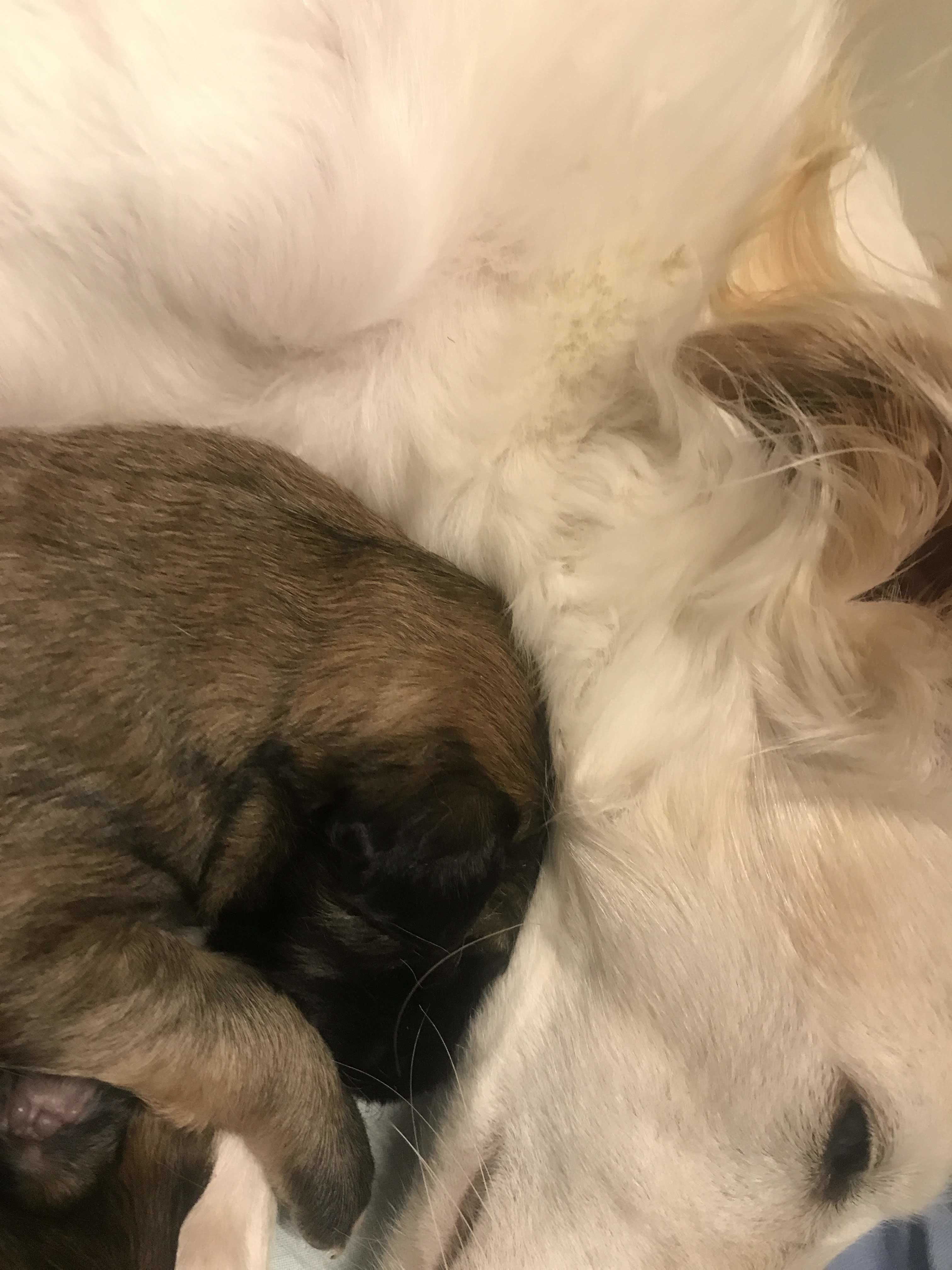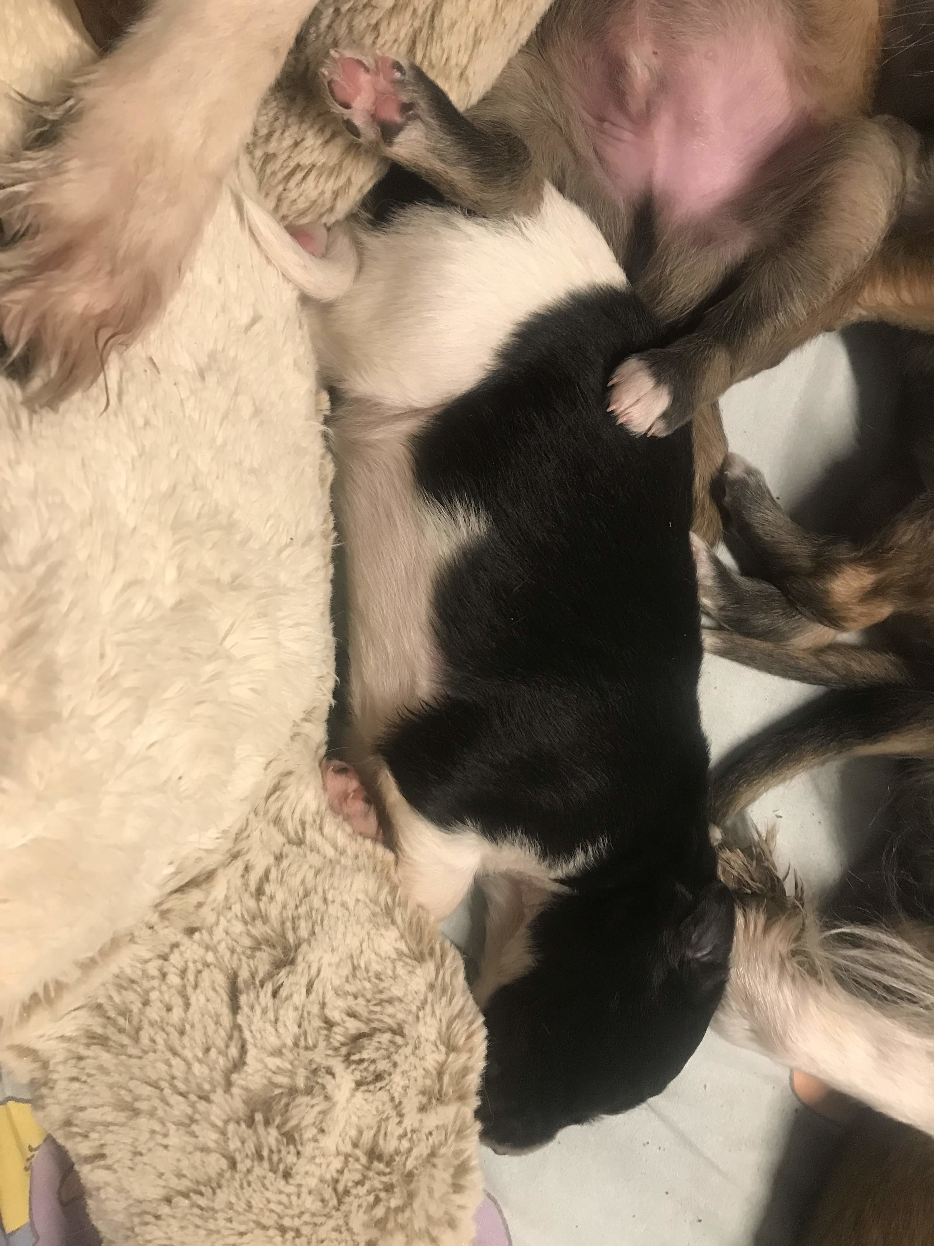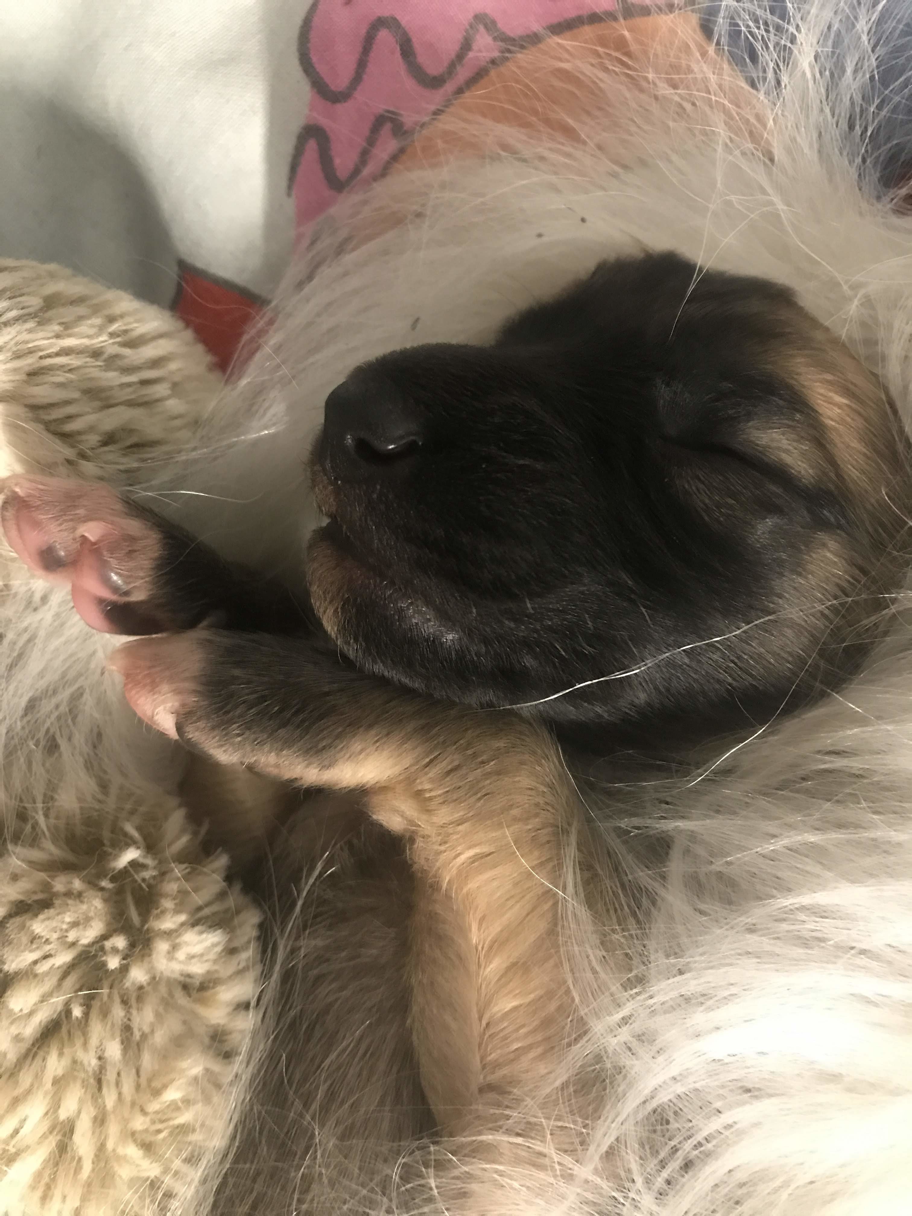 So, ich glaube jetzt fängt es so langsam an lustig zu werden. Die Augen gehen auf und die Ohren auch, das mit dem laufen sieht schon noch sehr merkwürdig aus, es ist meist ein rollen und umfallen. Der Bär, den sie gerne zum schlafen haben, wird erklettert und ich muss aufpassen, dass sie mir dabei nicht aus der Kiste krabbeln. Ihre Träume werden begleitet von knurren, laufen und bellen und wenn man sie am Hals krabbelt versuchen sie sich zu kratzen, es ist zu niedlich. Manchmal verirren sie sich in ihrer Kiste und dann kann man heulen wie ein Wolf aber ein sehr kleiner. Die erste Wurmkur haben sie brav geschluckt aber lecker ist was anderes. Ich muss ehrlich gestehen, die Wurfkiste steht da wo sonst um diese Zeit unser Weihnachtsbaum steht aber mir gefällt die Kiste viel besser, ein schönes Weihnachtsfest kann kommen, meine Geschenke habe ich schon.