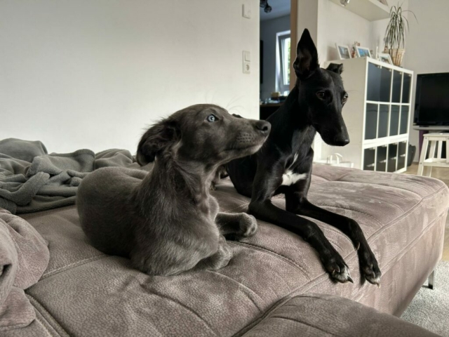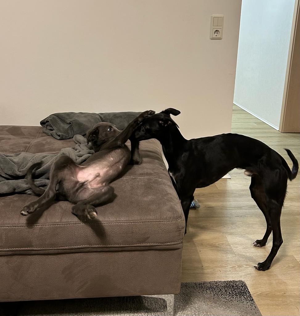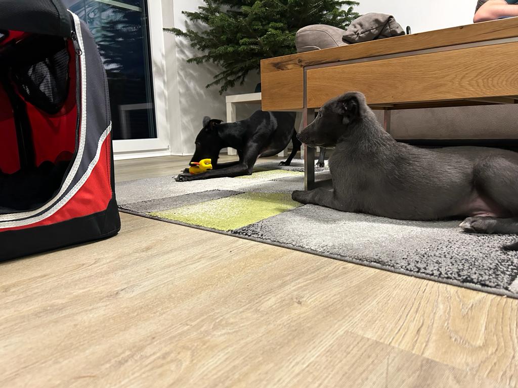 Bajor der sprachbegabt teilt ab sofort sein Bett mit Loki bei Familie Peters in Niederkassel. Bajor hat sich in den letzten Wochen super entwickelt und ist einer der größten aus dem Wurf. Leider benimmt er sich manchmal auch so. Wie ein Rambo walzt er alles platt. Das lustige war wenn ich dann mit ihm geschimpft habe hat er sich vor mich gesetzt und lautstark protestiert. In den letzten Tagen war er schon viel alleine unterwegs und abends meist der letzte der rein kam. Für ihn war die Zeit jetzt genau richtig umzuziehen. Er wird bestimmt zusammen mit Loki ordentlich Stimmung im Hause Peters machen. Ich wünsche allen viel Spaß und sage, bis zur nächsten Wanderung lieber Bajor.