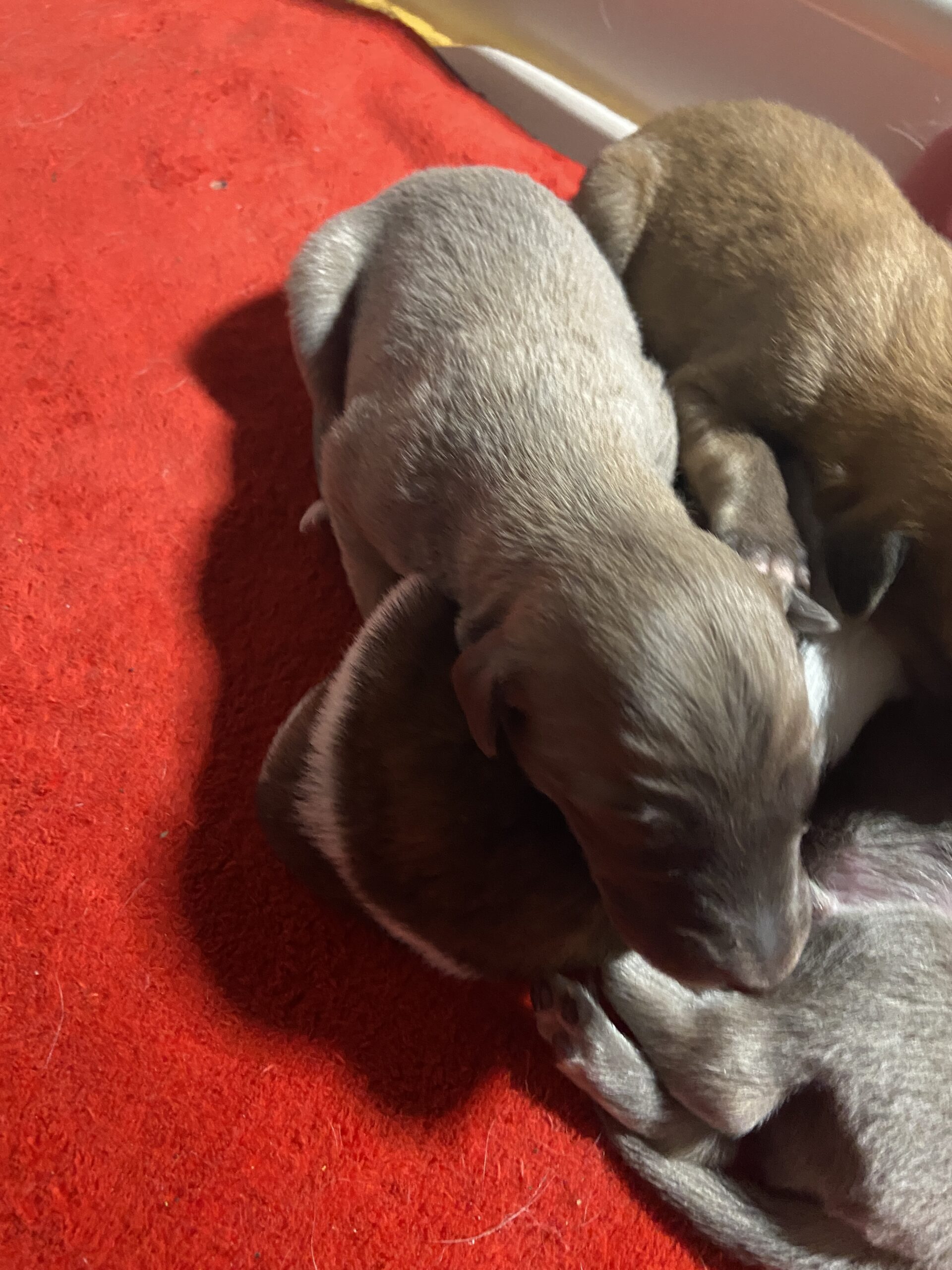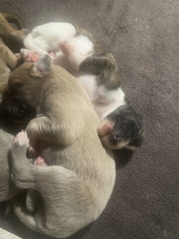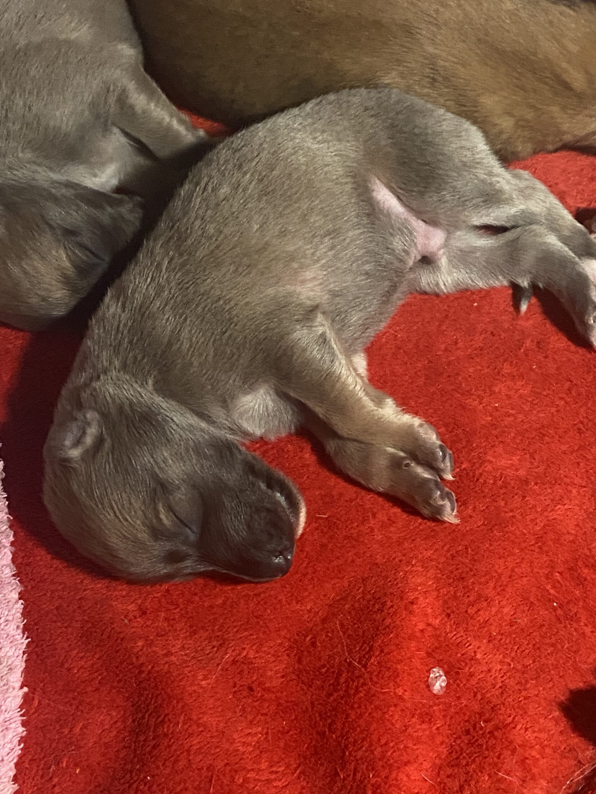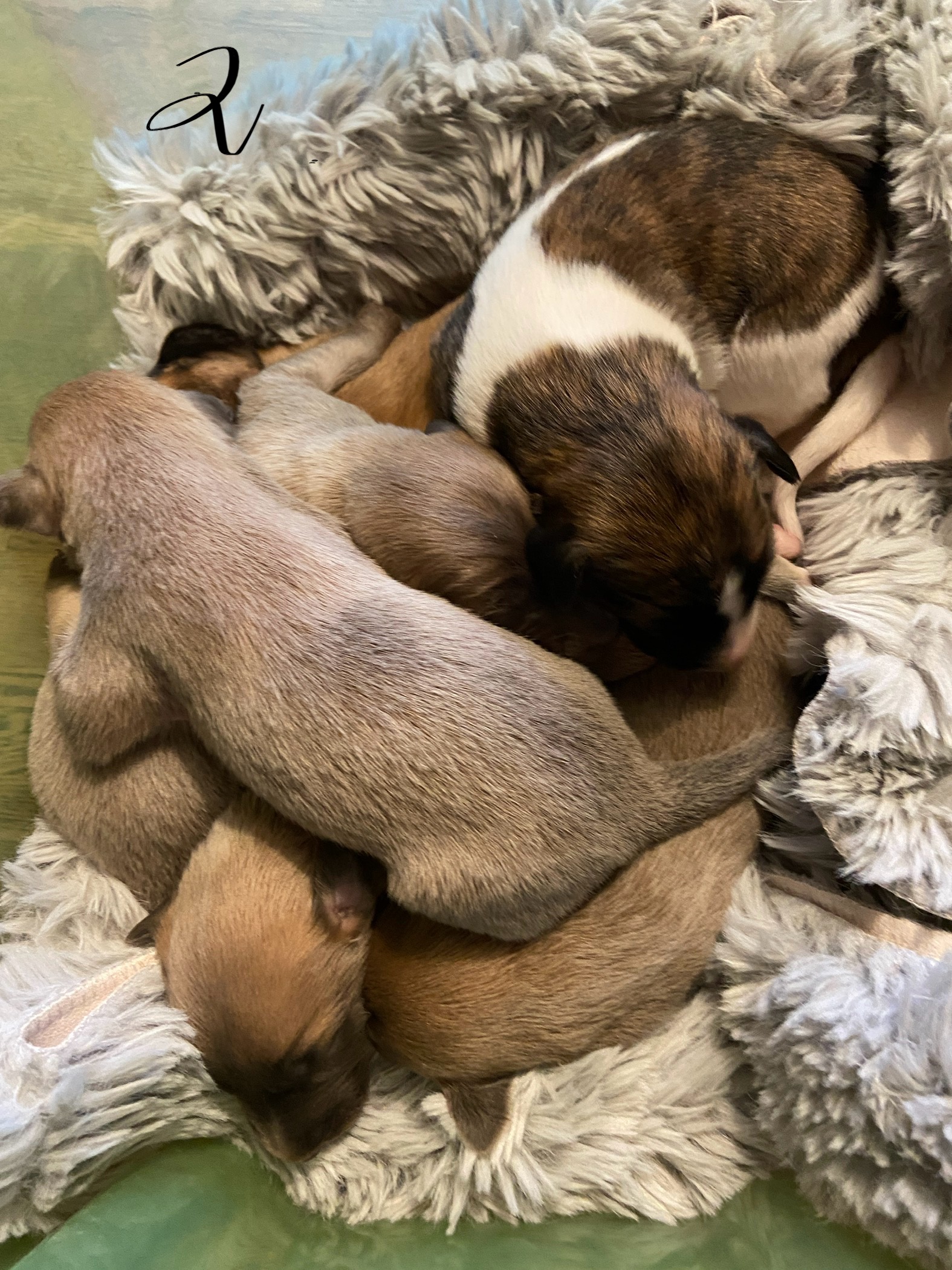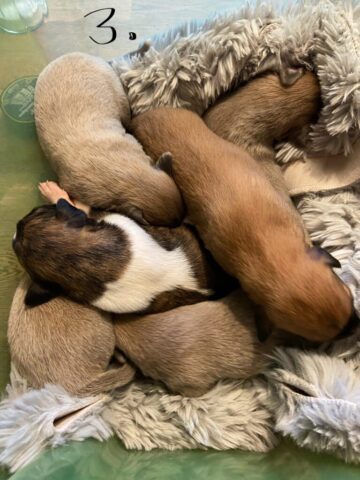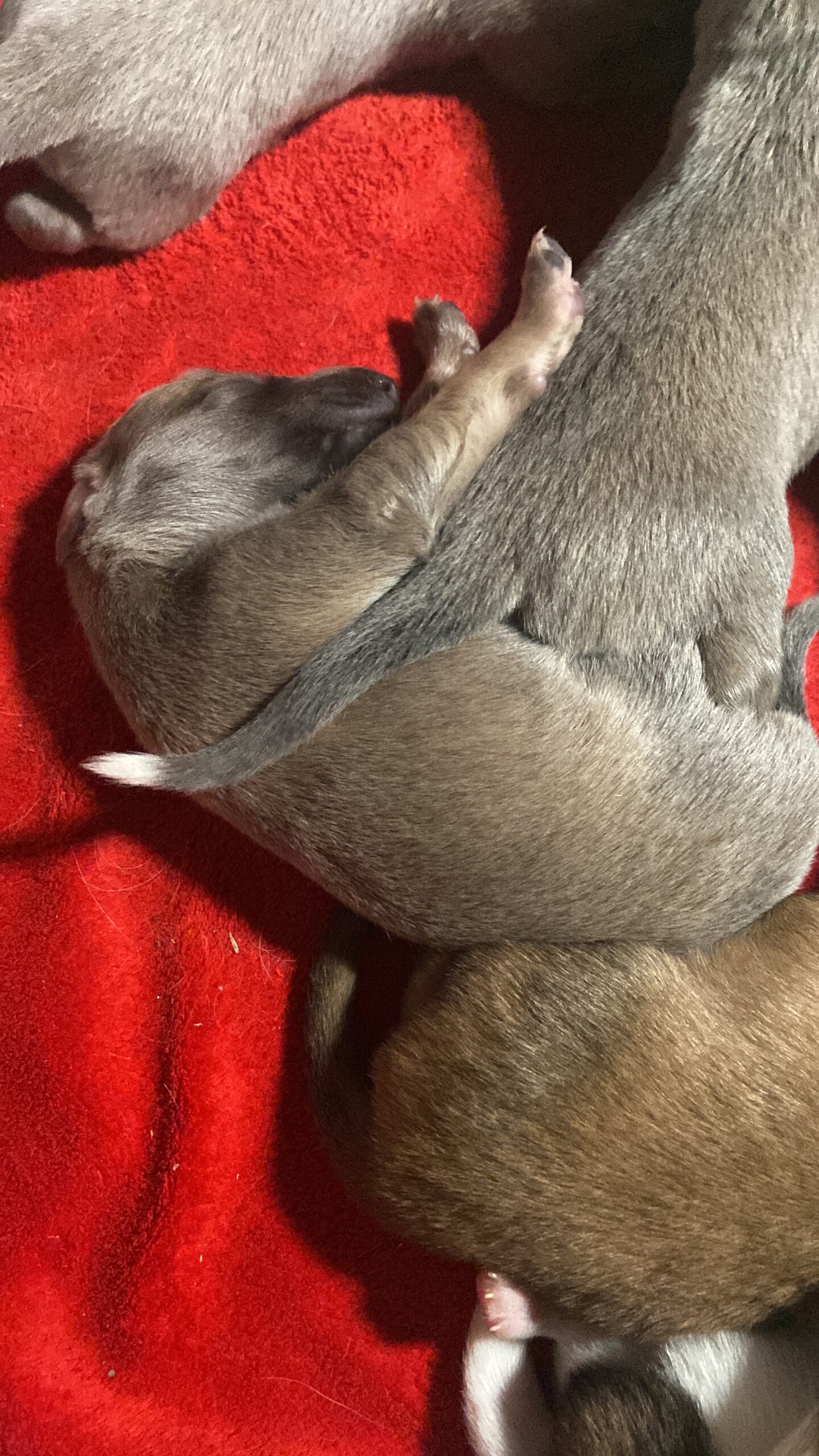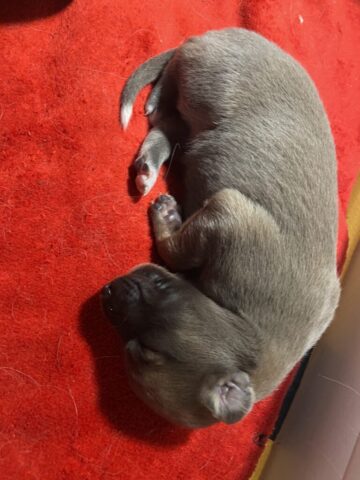 Auch dieses Mal geht die Zeit wieder viel zu schnell vorüber. Schon zwei Wochen mit den süßen kleinen Schätzen. So langsam werden es kleine Hunde die nicht nur robben, kriechen, Milch trinken und sich vor der lieben Wilma putzen lassen. Sie versuchen sich auf die Beine zu stellen und es soll wohl sowas wie laufen sein, allerdings wird die meiste Zeit noch gekugelt aber sitzen klappt. Die Augen sind jetzt, zum Ende der zweiten Woche, auf und wenn man sie anspricht reagieren sie, also gehen die Ohren auch auf. Seit einigen Tagen ist ein neuer Freund eingezogen. Sie haben einen Schmusebär wenn Mama mal eine Auszeit nimmt. Langsam kommt Leben in die Bude und meine Aufgaben werden umfangreicher. Es dauert nicht mehr lange und der erste Anbau steht an. Jetzt gibt es noch die erste Wurmkur und dann sind wir schon in Woche drei. Wilma ist eine total coole Mama was ich nie gedacht hätte. Mein kleiner Amerikaner, ein toller Schatz.