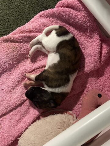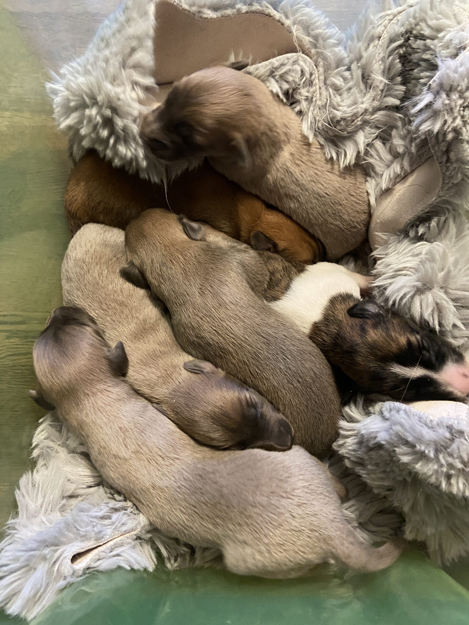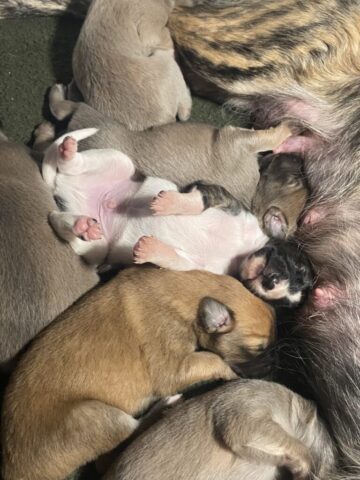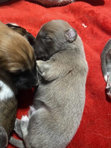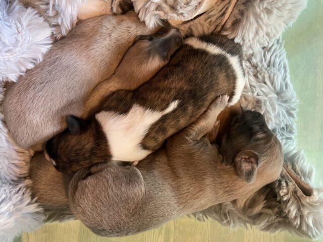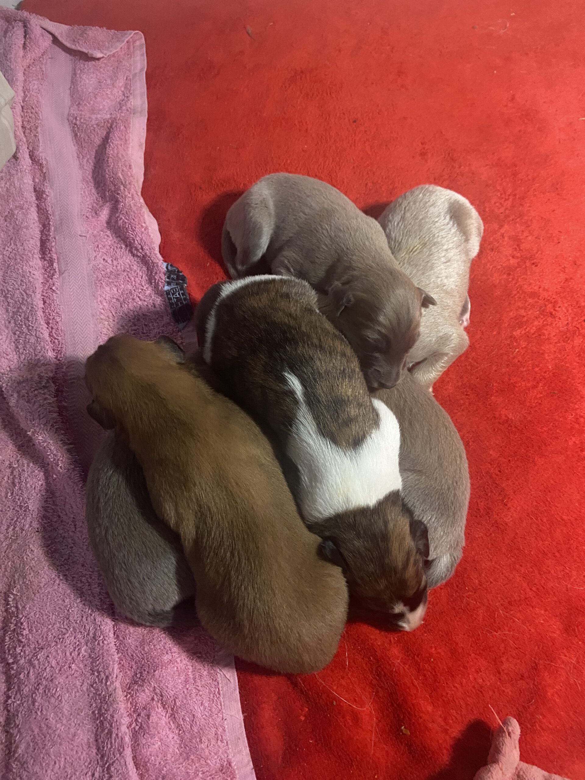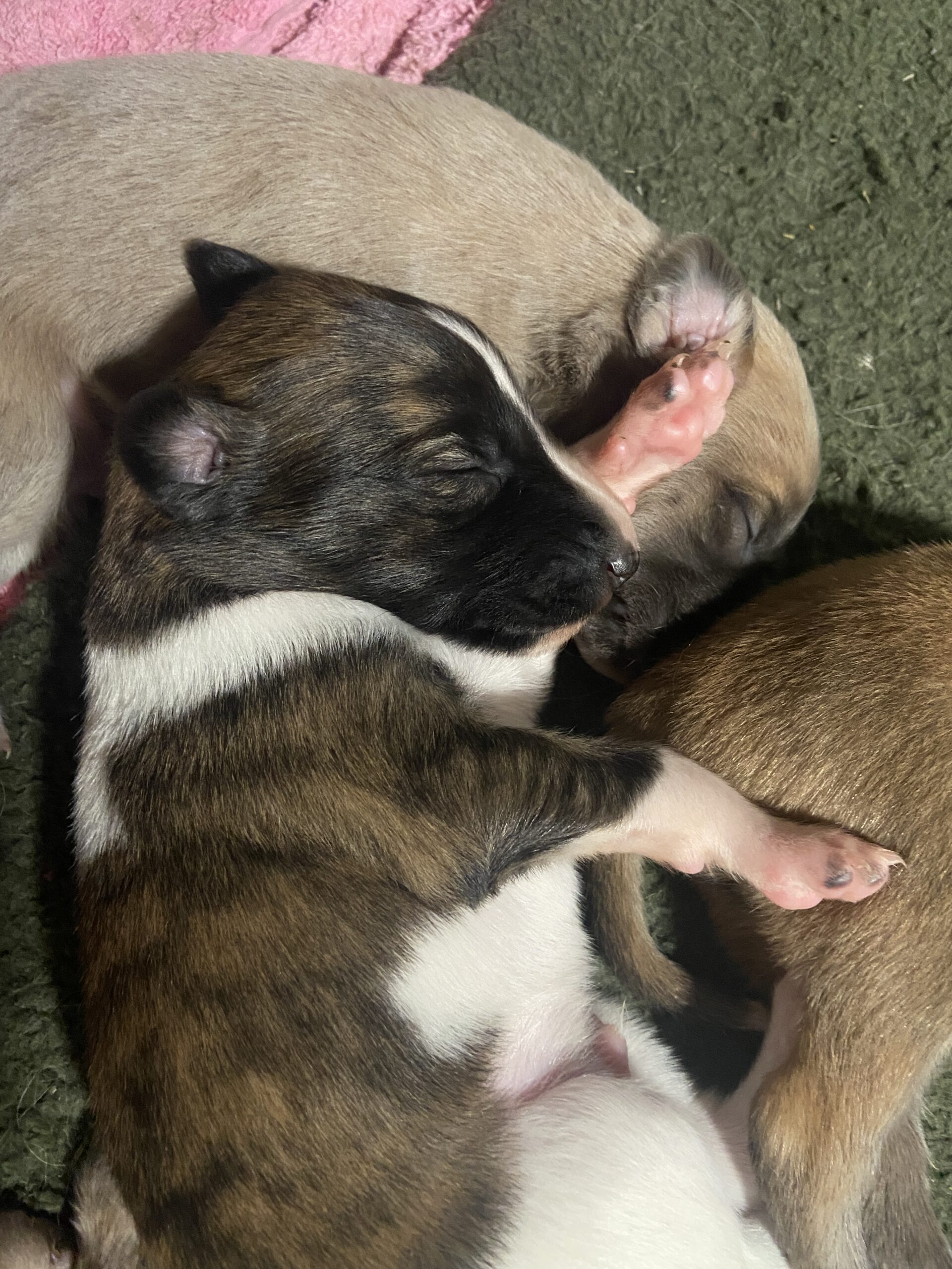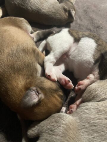 Auch dieses Mal geht die Zeit wieder viel zu schnell vorüber. Schon zwei Wochen mit den süßen kleinen Schätzen. So langsam werden es kleine Hunde die nicht nur robben, kriechen, Milch trinken und sich vor der lieben Wilma putzen lassen. Sie versuchen sich auf die Beine zu stellen und es soll wohl sowas wie laufen sein, allerdings wird die meiste Zeit noch gekugelt aber sitzen klappt. Die Augen sind jetzt, zum Ende der zweiten Woche, auf und wenn man sie anspricht reagieren sie, also gehen die Ohren auch auf. Seit einigen Tagen ist ein neuer Freund eingezogen. Sie haben einen Schmusebär wenn Mama mal eine Auszeit nimmt. Langsam kommt Leben in die Bude und meine Aufgaben werden umfangreicher. Es dauert nicht mehr lange und der erste Anbau steht an. Jetzt gibt es noch die erste Wurmkur und dann sind wir schon in Woche drei. Wilma ist eine total coole Mama was ich nie gedacht hätte. Mein kleiner Amerikaner, ein toller Schatz.