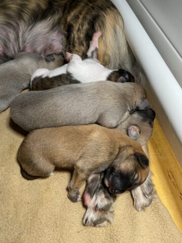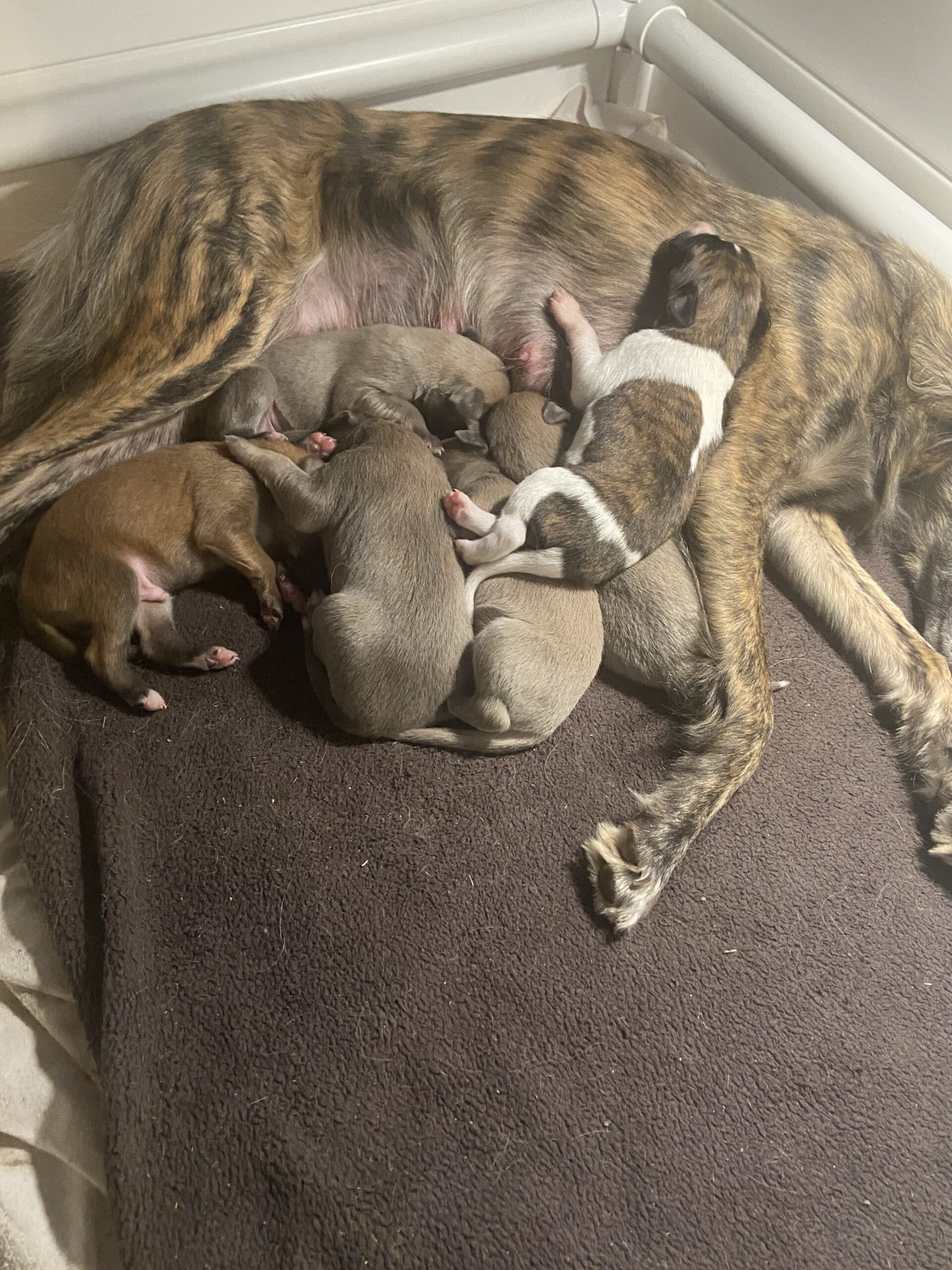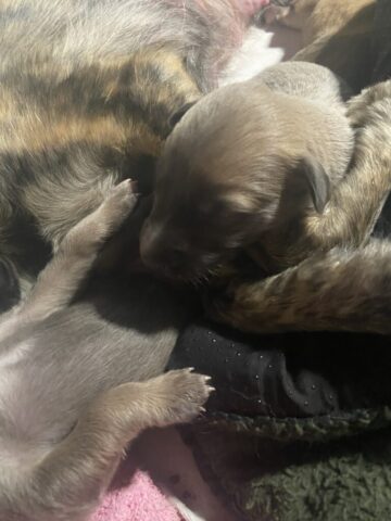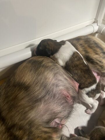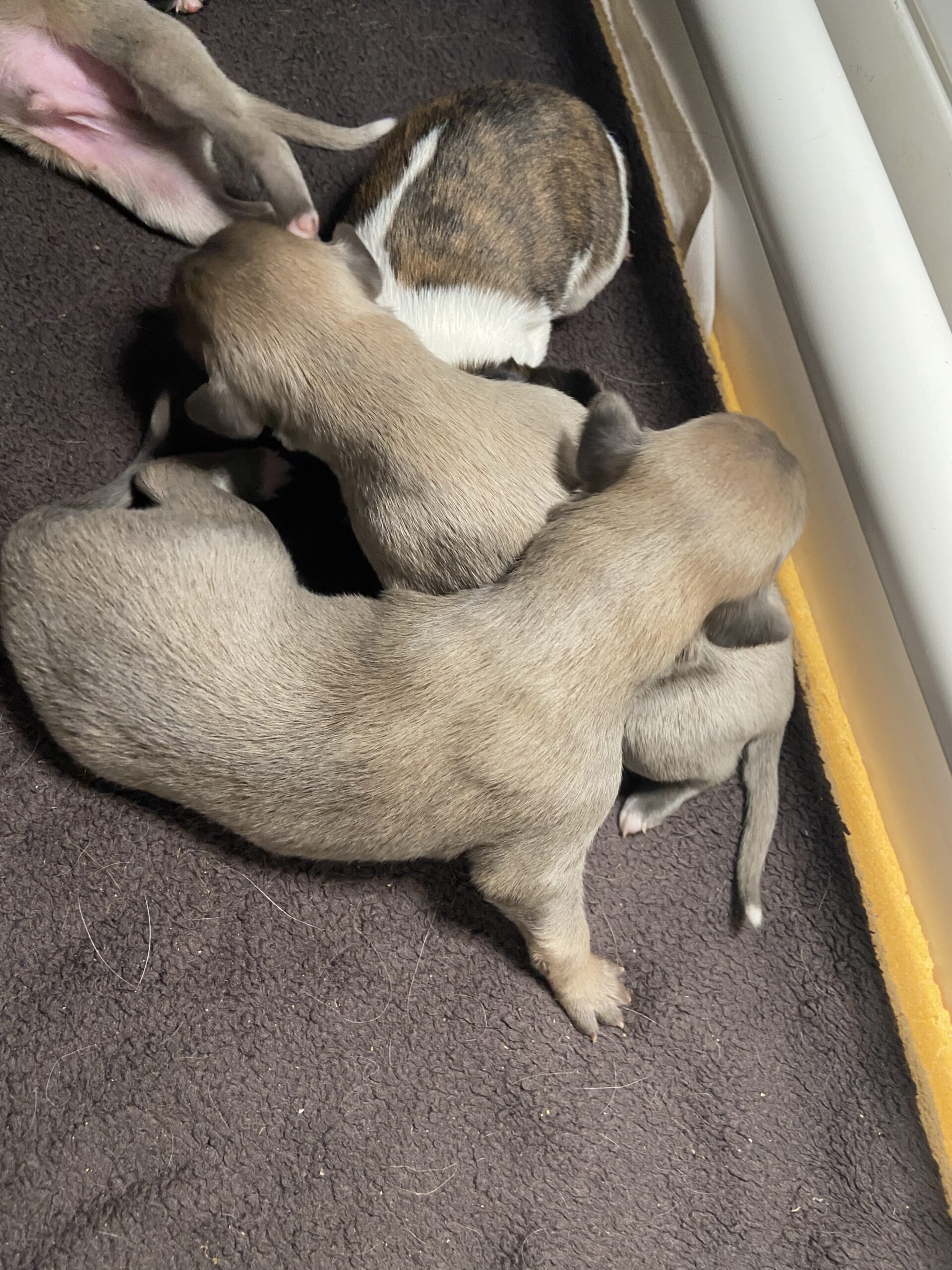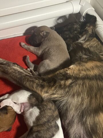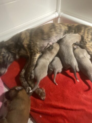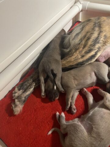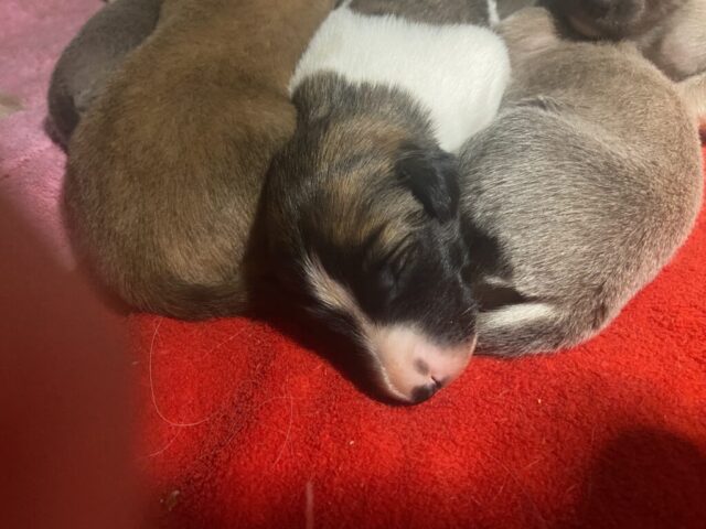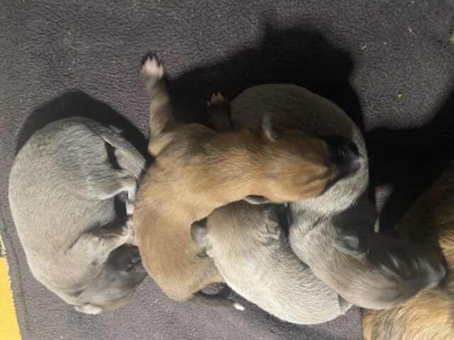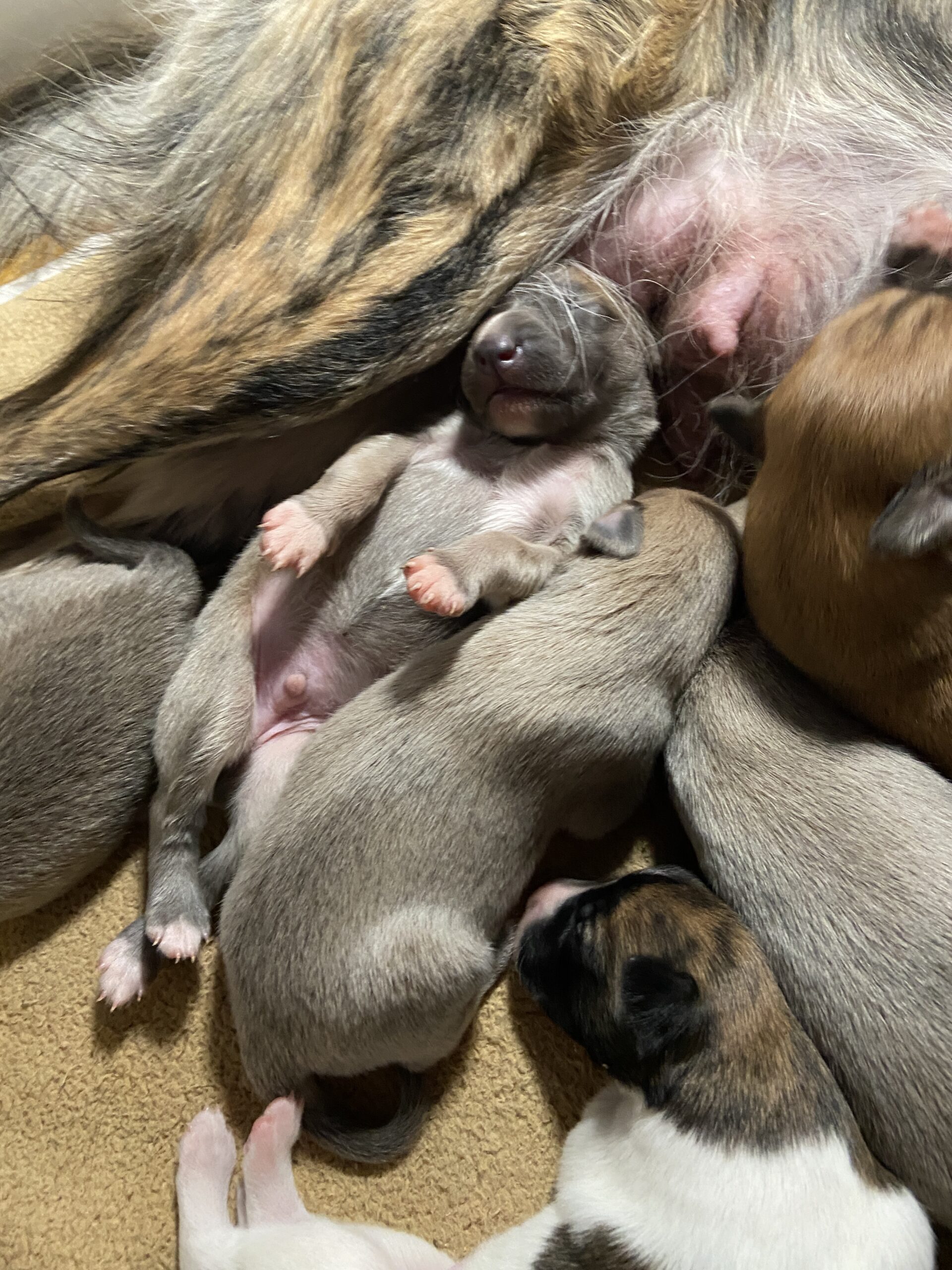Auch dieses Mal geht die Zeit wieder viel zu schnell vorüber. Schon zwei Wochen mit den süßen kleinen Schätzen. So langsam werden es kleine Hunde die nicht nur robben, kriechen, Milch trinken und sich vor der lieben Wilma putzen lassen. Sie versuchen sich auf die Beine zu stellen und es soll wohl sowas wie laufen sein, allerdings wird die meiste Zeit noch gekugelt aber sitzen klappt. Die Augen sind jetzt, zum Ende der zweiten Woche, auf und wenn man sie anspricht reagieren sie, also gehen die Ohren auch auf. Seit einigen Tagen ist ein neuer Freund eingezogen. Sie haben einen Schmusebär wenn Mama mal eine Auszeit nimmt. Langsam kommt Leben in die Bude und meine Aufgaben werden umfangreicher. Es dauert nicht mehr lange und der erste Anbau steht an. Jetzt gibt es noch die erste Wurmkur und dann sind wir schon in Woche drei. Wilma ist eine total coole Mama was ich nie gedacht hätte. Mein kleiner Amerikaner, ein toller Schatz.