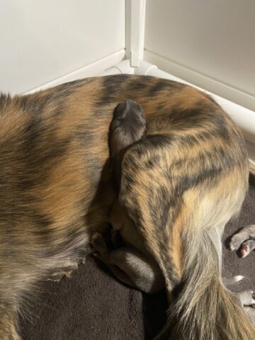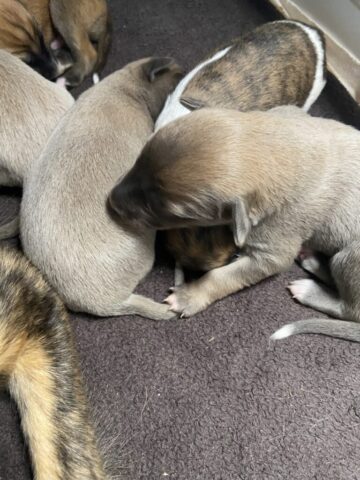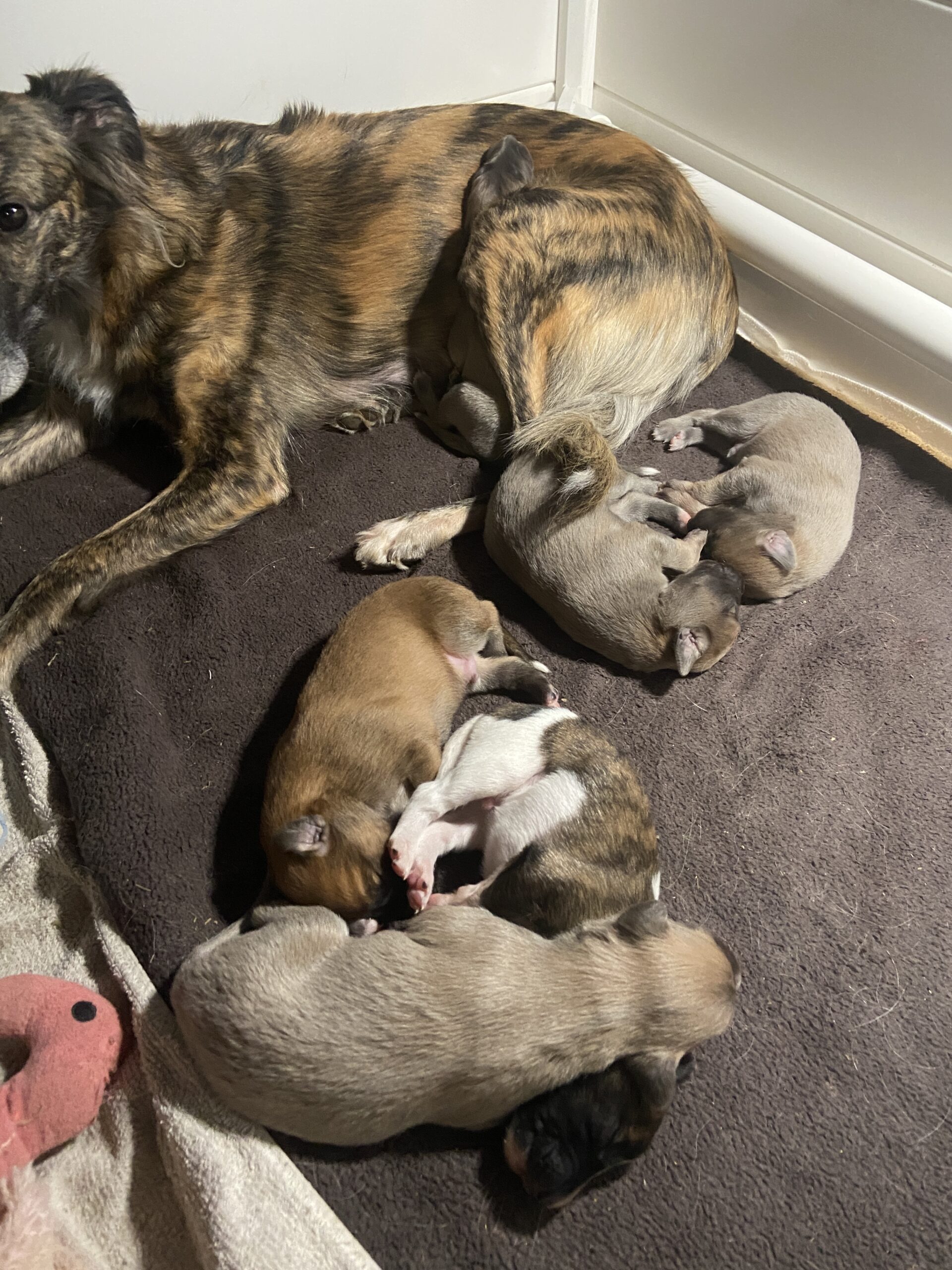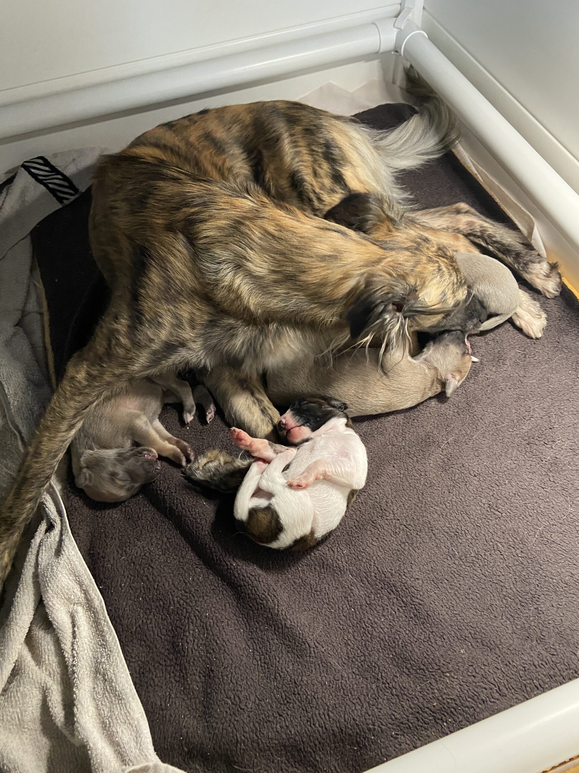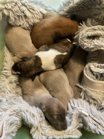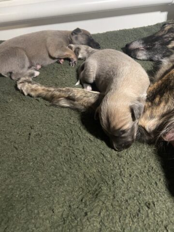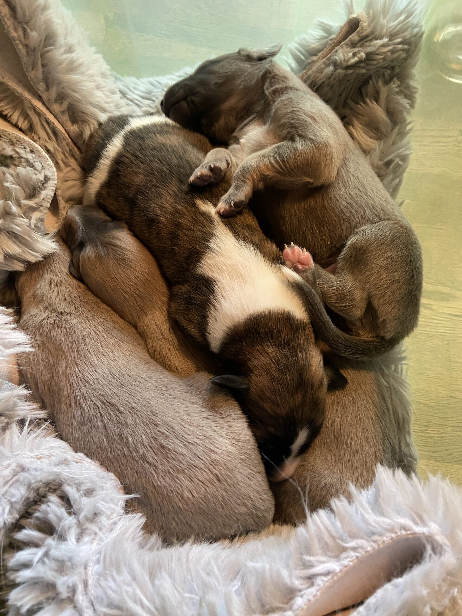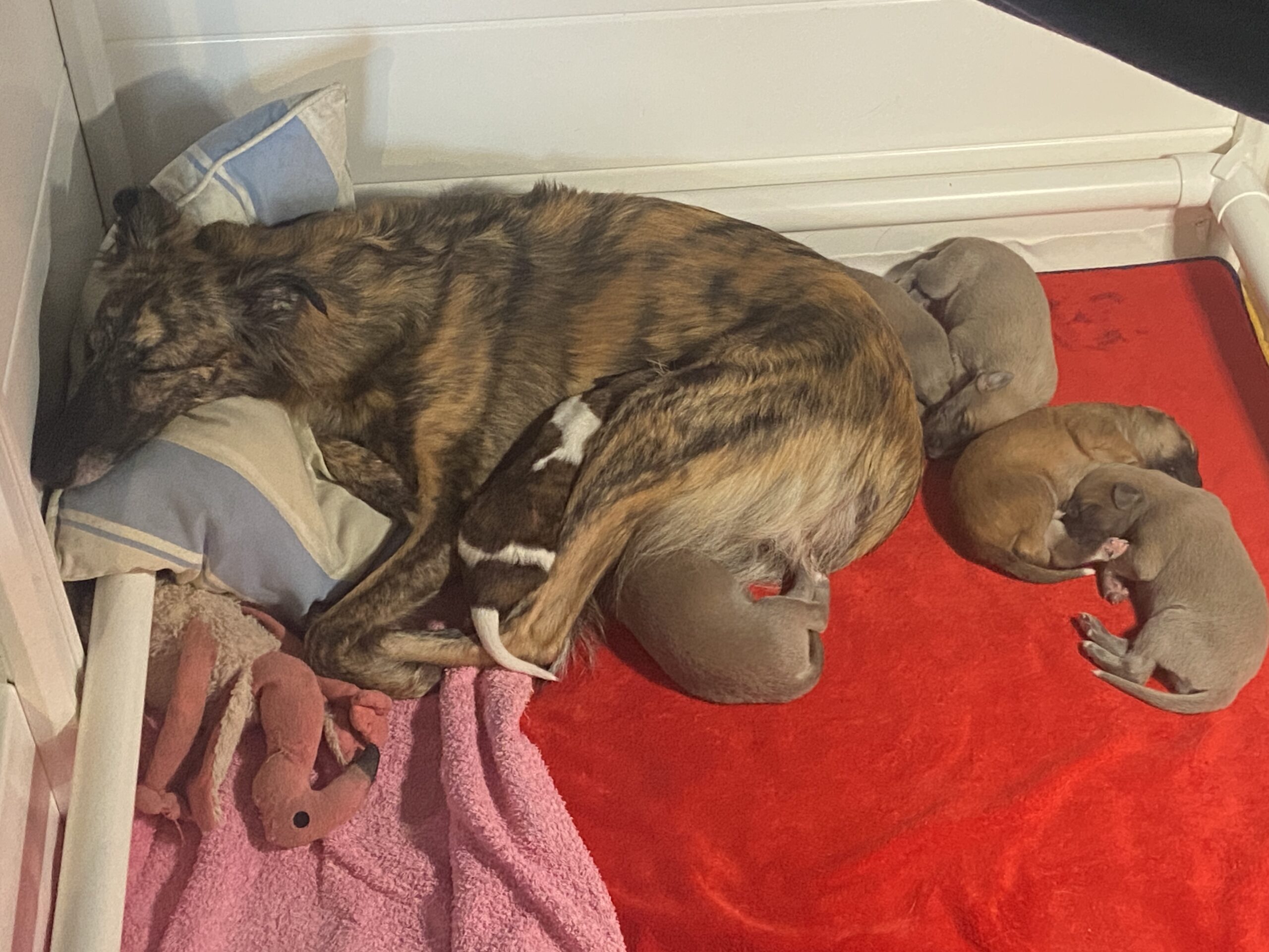 Auch dieses Mal geht die Zeit wieder viel zu schnell vorüber. Schon zwei Wochen mit den süßen kleinen Schätzen. So langsam werden es kleine Hunde die nicht nur robben, kriechen, Milch trinken und sich vor der lieben Wilma putzen lassen. Sie versuchen sich auf die Beine zu stellen und es soll wohl sowas wie laufen sein, allerdings wird die meiste Zeit noch gekugelt aber sitzen klappt. Die Augen sind jetzt, zum Ende der zweiten Woche, auf und wenn man sie anspricht reagieren sie, also gehen die Ohren auch auf. Seit einigen Tagen ist ein neuer Freund eingezogen. Sie haben einen Schmusebär wenn Mama mal eine Auszeit nimmt. Langsam kommt Leben in die Bude und meine Aufgaben werden umfangreicher. Es dauert nicht mehr lange und der erste Anbau steht an. Jetzt gibt es noch die erste Wurmkur und dann sind wir schon in Woche drei. Wilma ist eine total coole Mama was ich nie gedacht hätte. Mein kleiner Amerikaner, ein toller Schatz.