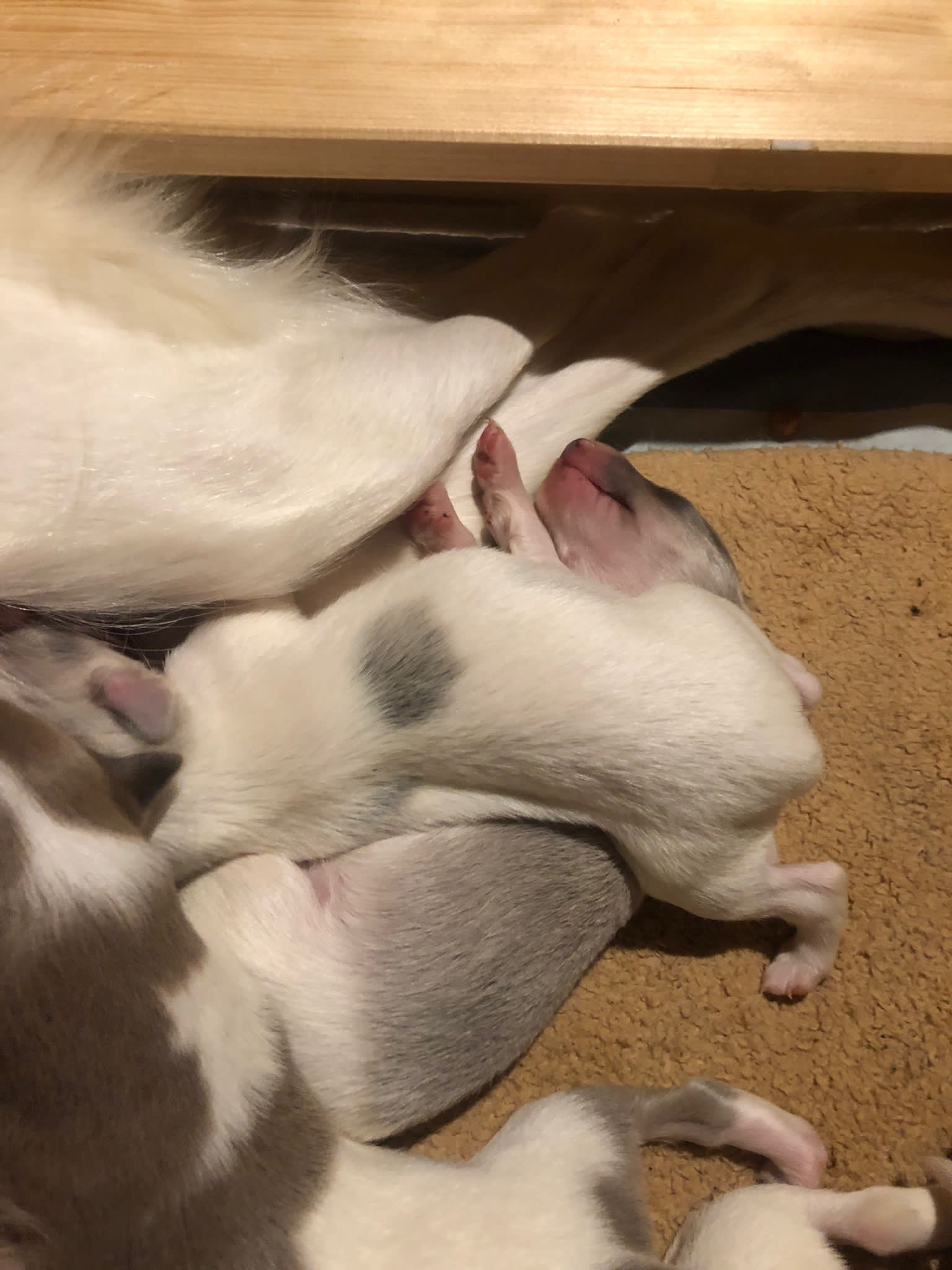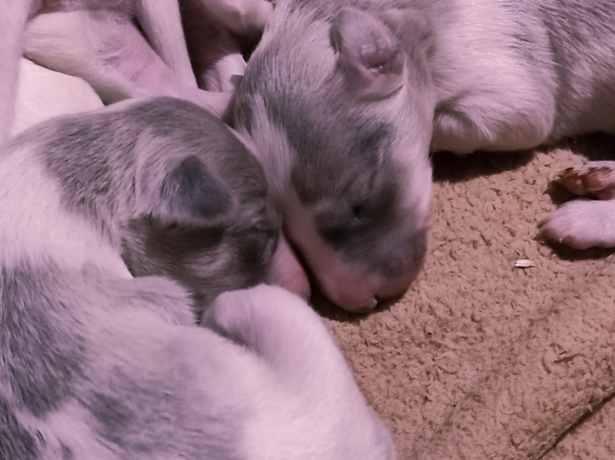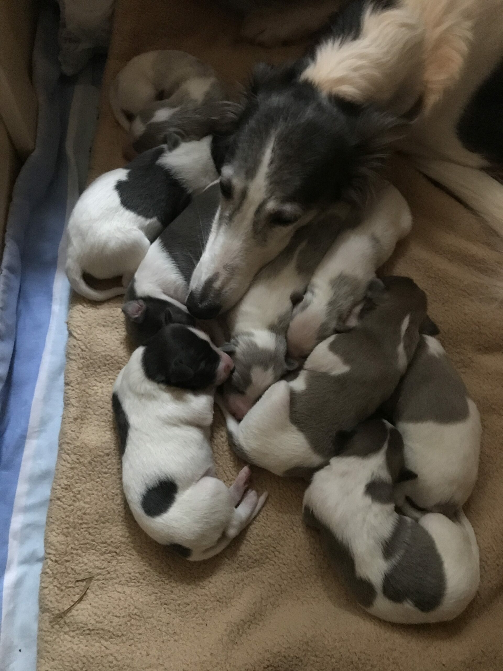 Heute sind die kleinen dicken Schätze zwei Wochen alt und haben ordentlich zugenommen. Die Woche hat eigentlich ganz nett angefangen und zum Ende gab es dann die erste Wurmkur, rosa und ekelig !!!! Auf die Waage bringen sie schon ordentlich Gewicht der kleinste 950g und die dickste 1200g, ich glaube das werden dicke Windhunde, auch lustig. Die Augen sind bei fast allen vollständig auf und sie sind schon recht flott unterwegs. Ich denke in einer Woche werde ich die Wohnung erweitern müssen. Irgendwie habe ich etwas Respekt bei 17 kleinen Flitzern aber ich freue mich auch drauf wenn sie im Stroh spielen können.