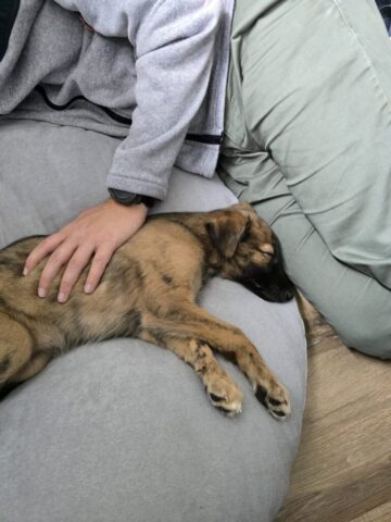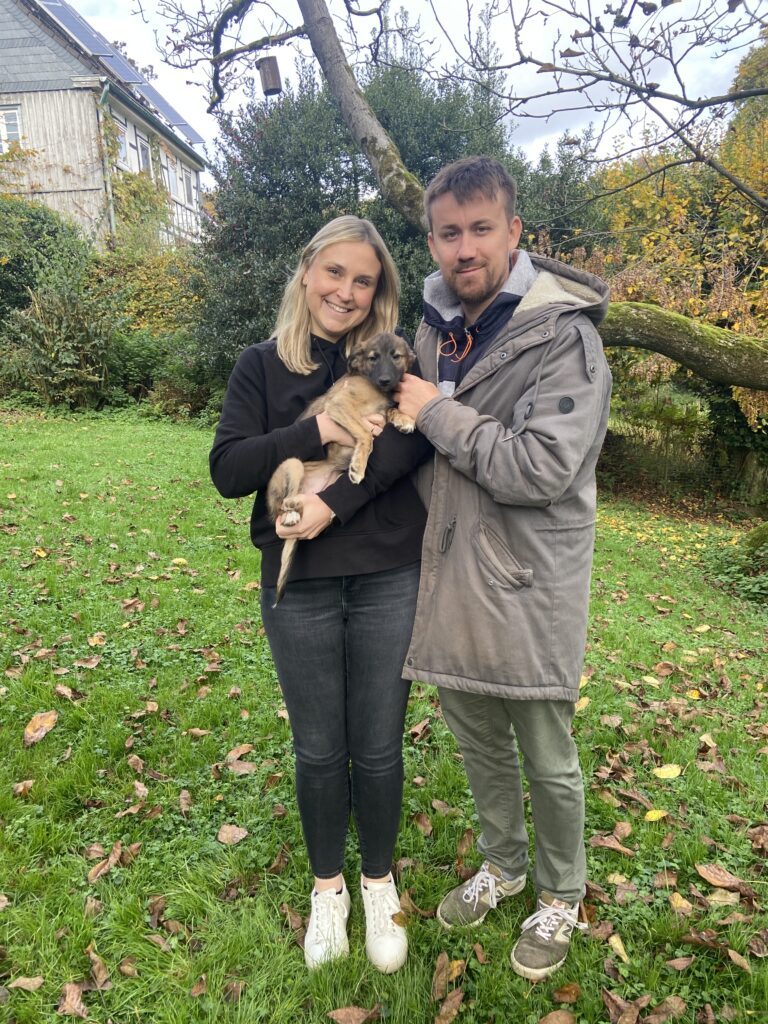 Die süße Dizzy ist das zweite Hundekind an diesem Tag und besetzt für lange Zeit das Sofa bei der genauso süßen Hanna und ihren Eltern Marie und Jonas in Kreuztal. Dizzy hört jetzt, so hoffe ich, auf den Namen Frieda und hat den Hundefreund Nando an ihrer Seite. Frieda und Hanna werden ganz bestimmt dicke Freunde, anders geht es nicht !!!! Sie sind sich irgendwie sehr ähnlich und beide immer lustig unterwegs. Bei mir war Frieda gemeinsam mit Adele das perfekte Team und wie geschaffen für Blödsinn. Die zwei haben mich oft zum lachen gebracht und zusammen mit ihrem Bruder recht schnell das kleine Seehündchen erschwommen. Für Frieda freut es mich sehr diese ideale Familie gefunden zu haben. Sie mag Kinder und spielt sogar recht vorsichtig mit ihnen. Hier hatte sie den meisten Spaß im Heu oder Federvieh jagen war auch so ihr Ding bis sie Bekanntschaft mit der Hühnermama gemacht hat. Danach ging es etwas ruhiger zu. Mit ihrem Auszug war es hier direkt viel stiller, sie hatte schon was Besonderes. Frieda werde ich bestimmt wiedersehen und wünsche allen eine, vor allem, lustige Zeit.