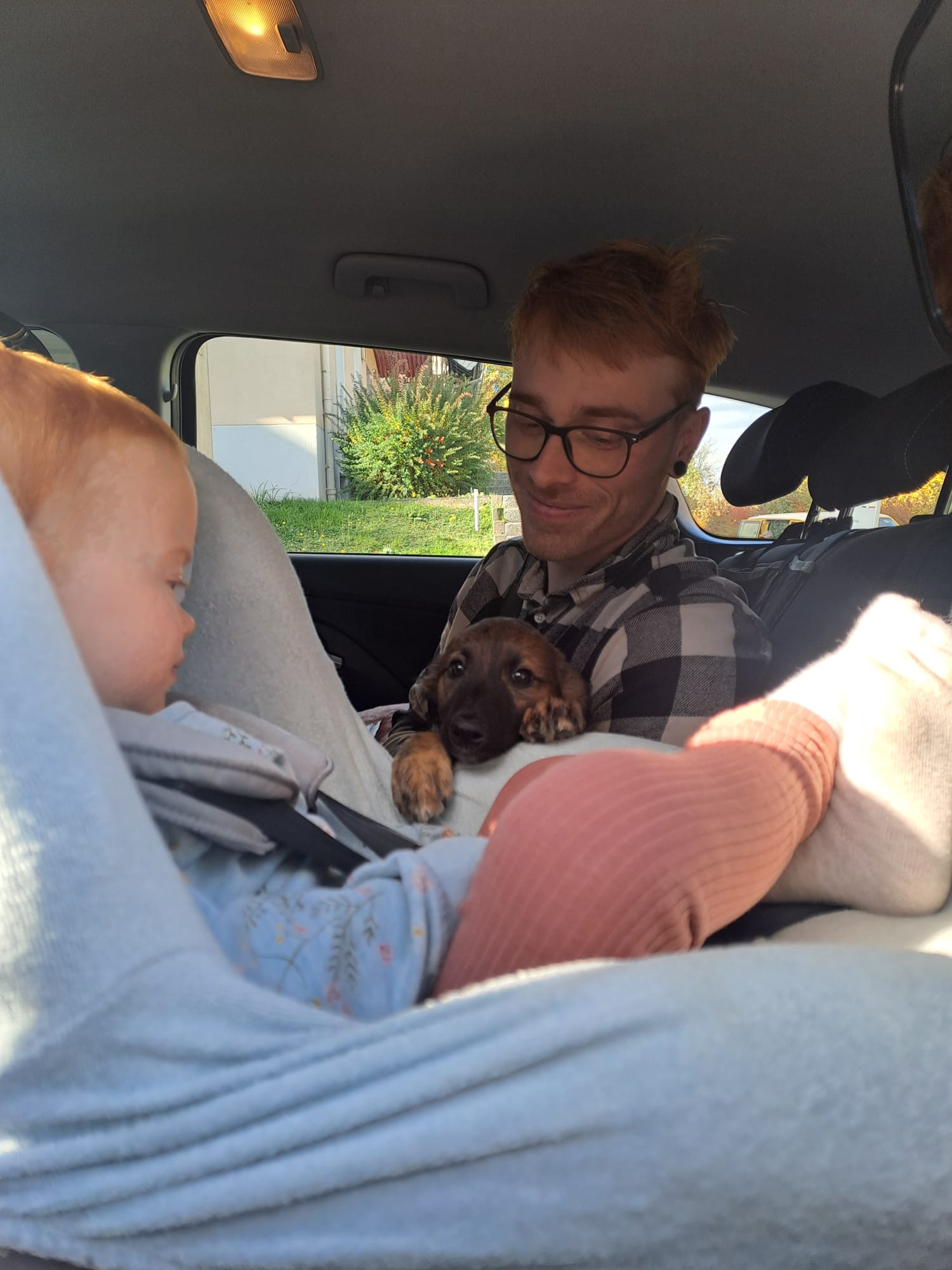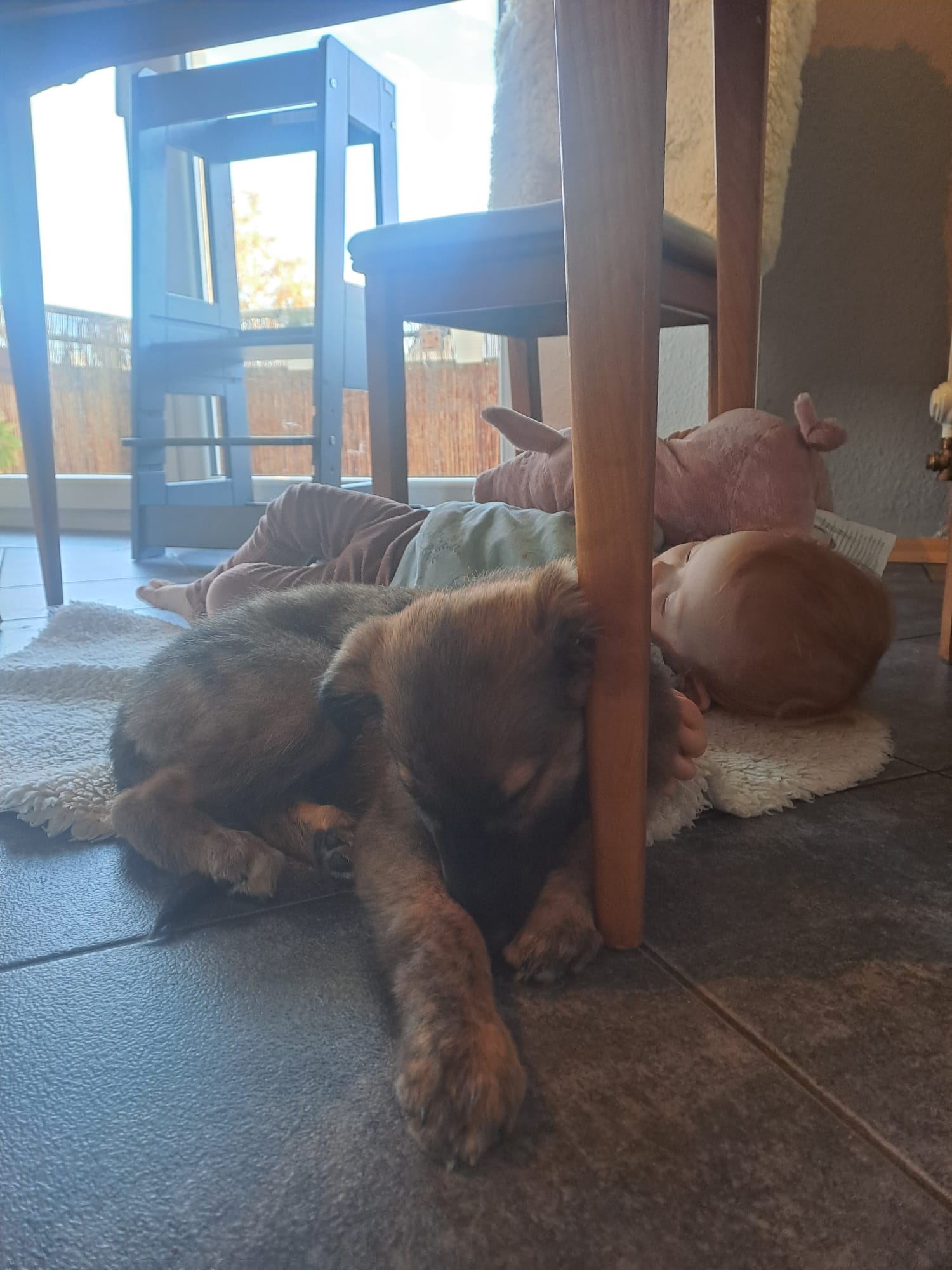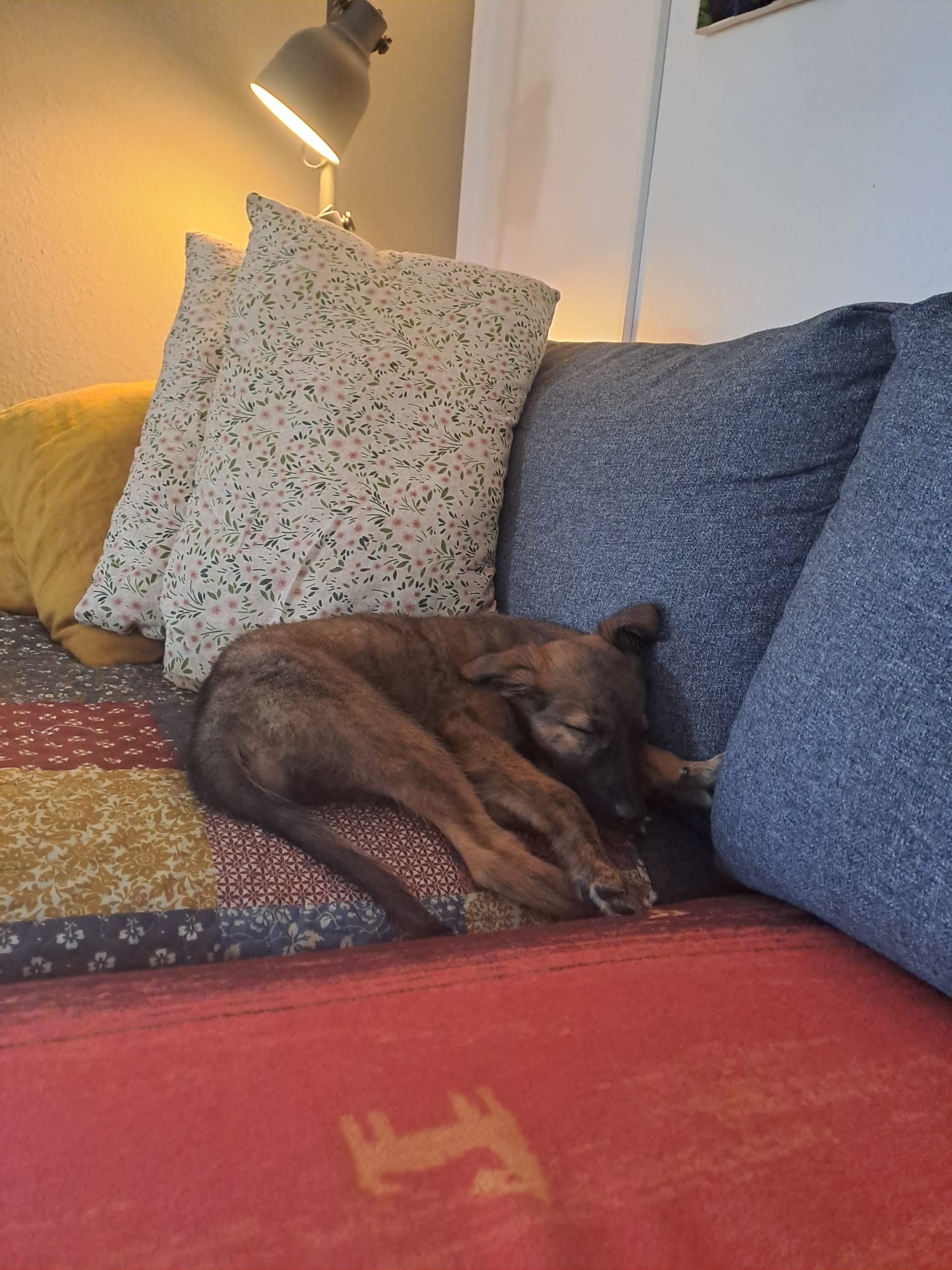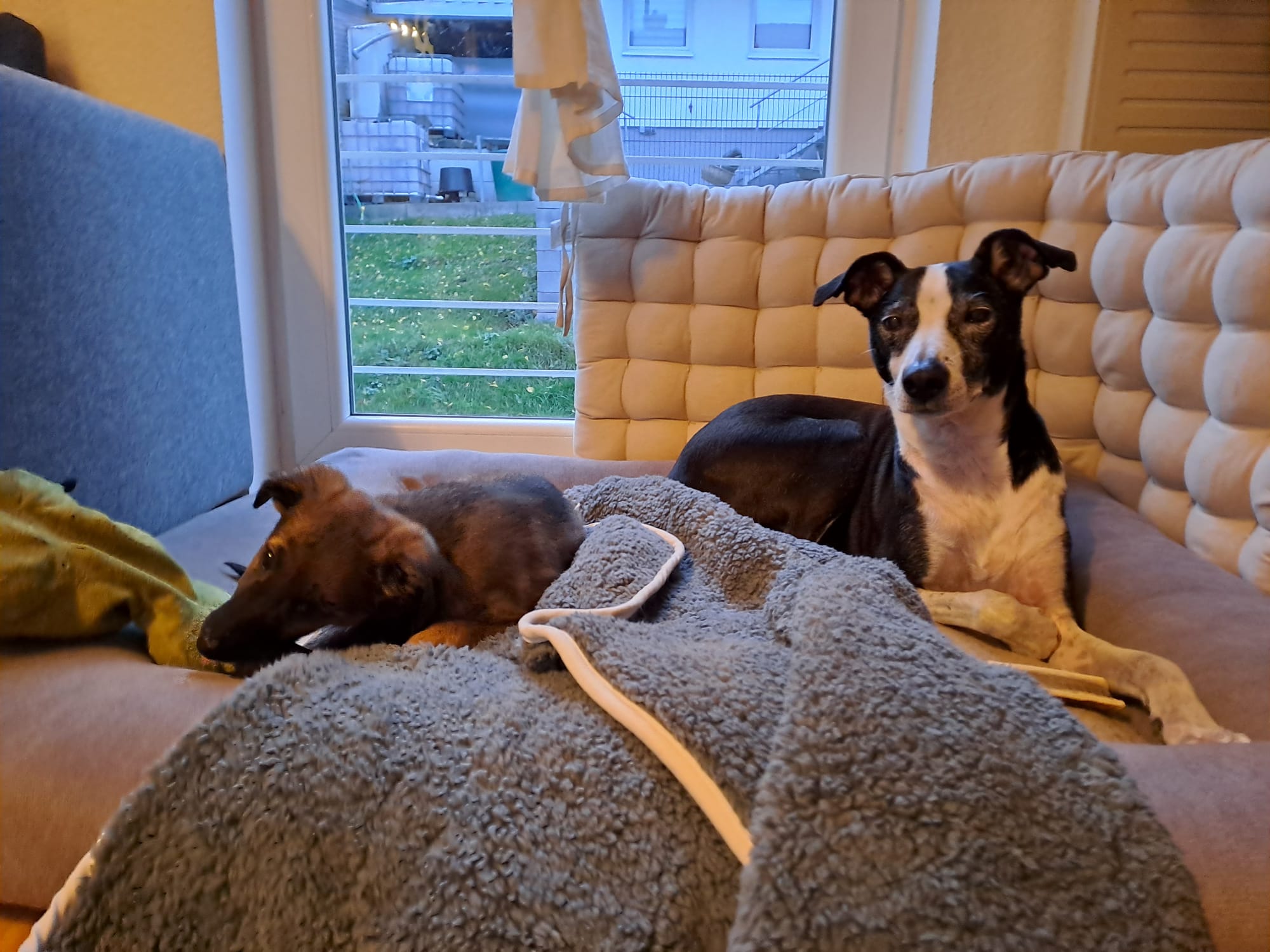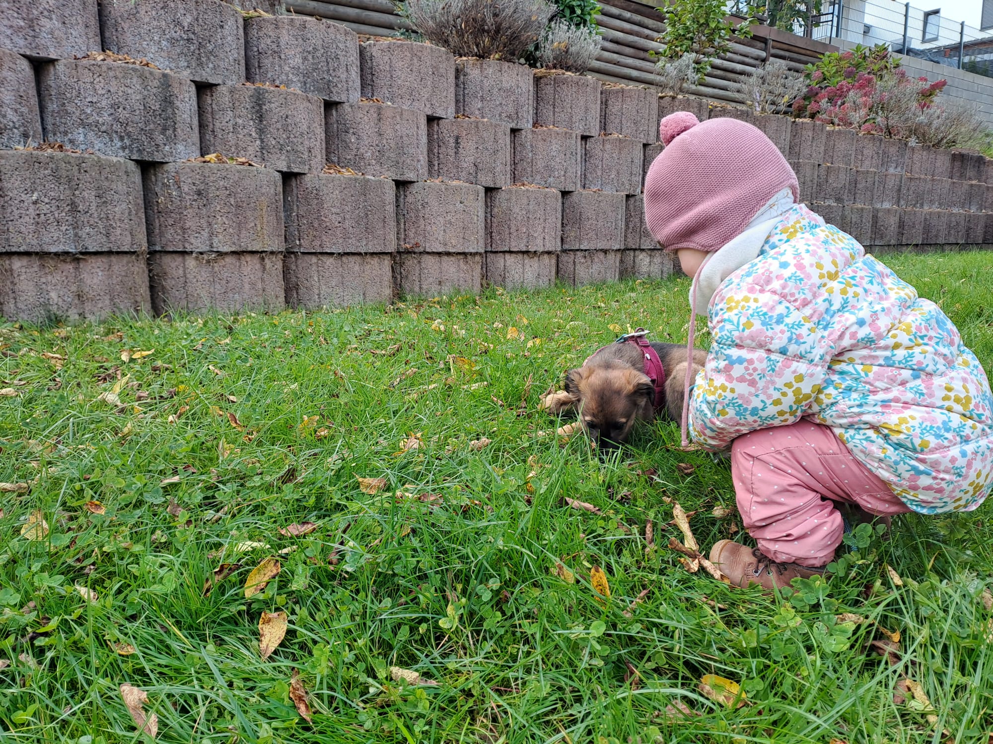 Die süße Dizzy ist das zweite Hundekind an diesem Tag und besetzt für lange Zeit das Sofa bei der genauso süßen Hanna und ihren Eltern Marie und Jonas in Kreuztal. Dizzy hört jetzt, so hoffe ich, auf den Namen Frieda und hat den Hundefreund Nando an ihrer Seite. Frieda und Hanna werden ganz bestimmt dicke Freunde, anders geht es nicht !!!! Sie sind sich irgendwie sehr ähnlich und beide immer lustig unterwegs. Bei mir war Frieda gemeinsam mit Adele das perfekte Team und wie geschaffen für Blödsinn. Die zwei haben mich oft zum lachen gebracht und zusammen mit ihrem Bruder recht schnell das kleine Seehündchen erschwommen. Für Frieda freut es mich sehr diese ideale Familie gefunden zu haben. Sie mag Kinder und spielt sogar recht vorsichtig mit ihnen. Hier hatte sie den meisten Spaß im Heu oder Federvieh jagen war auch so ihr Ding bis sie Bekanntschaft mit der Hühnermama gemacht hat. Danach ging es etwas ruhiger zu. Mit ihrem Auszug war es hier direkt viel stiller, sie hatte schon was Besonderes. Frieda werde ich bestimmt wiedersehen und wünsche allen eine, vor allem, lustige Zeit.