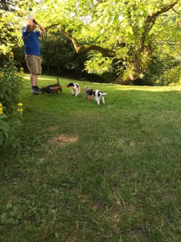 Die Woche des Auszugs und ich habe gedacht es würde mir diesmal gut tun wenn meine Schätze gehen aber es schmerzt, besonders bei Theo, meinem kleinen Liebling. Wobei ich genau weis, dass Theo das große Los gezogen hat, er hat mindestens drei Bedienstete und wird total verwöhnt. Das soll natürlich nicht heißen, dass die anderen nicht das große Los gezogen haben. Auch sie haben ein super schönes neues Zuhause gefunden. Den letzten Spaziergang mit allen 11 Schätzen habe ich sehr genossen und der Spaßfaktor war nicht nur auf meiner Seite. Ab jetzt wird es ruhiger und übersichtlicher und es freut mich, dass diesmal bis auf zwei Schätze, alle in der Nähe bleiben.