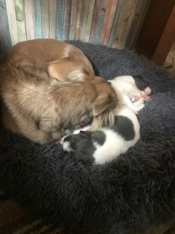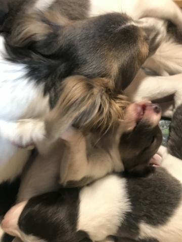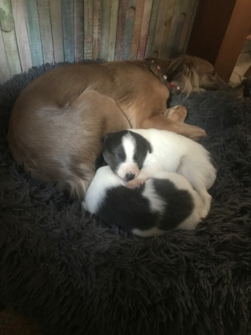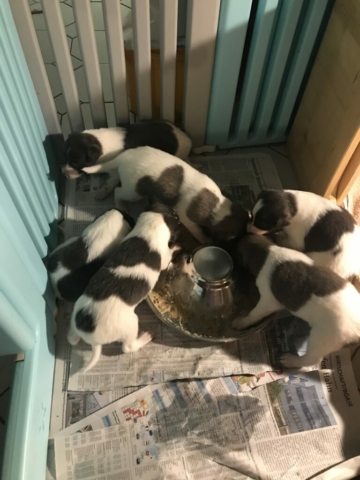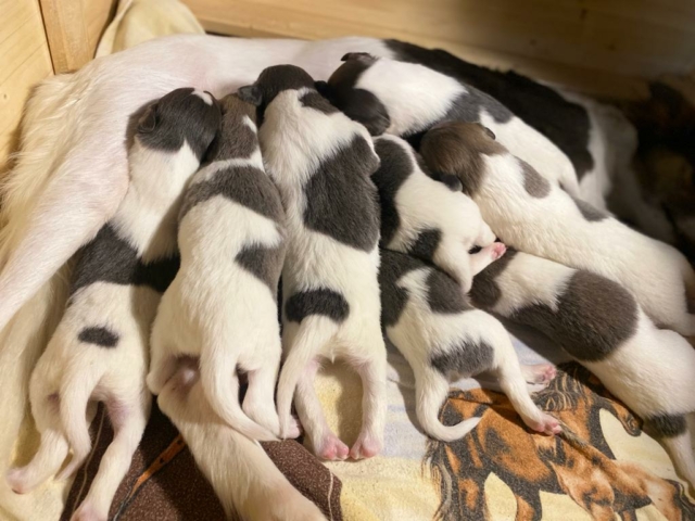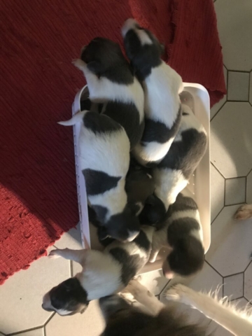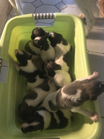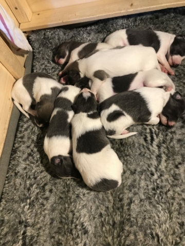Meinen kleinen Schätze sind jetzt schon groß und in weiteren vier Wochen schon fast wieder in ihren neuen Familien zuhause. Luise genießt ihr Leben öfter ganz alleine ohne die kleinen Nimmersatt Dinger und die Zwerge haben ihre Ersatznahrung, Welpenbrei, gut vertragen. Sie haben einen gesunden Appetit und entwickeln sich auch demensprechend. In einer Woche ist das laufen richtig sicher geworden und die Türe an ihrem Laufgitter MUSS offen sein sonst ist nicht genug Platz und das wird lautstark verkündet. Sie werden jetzt richtig süss. Wenn ich sie rufe kommen sie angedüst und freuen sich mit dem ganzen Körper. Allerdings wird mein putzen auch umfangreicher, sie sind eben überall, nur kaum noch in ihrer Wurfkiste. Ich freue mich auf die neue Woche und auf neue Erkundungsreisen mit den Zwergen.