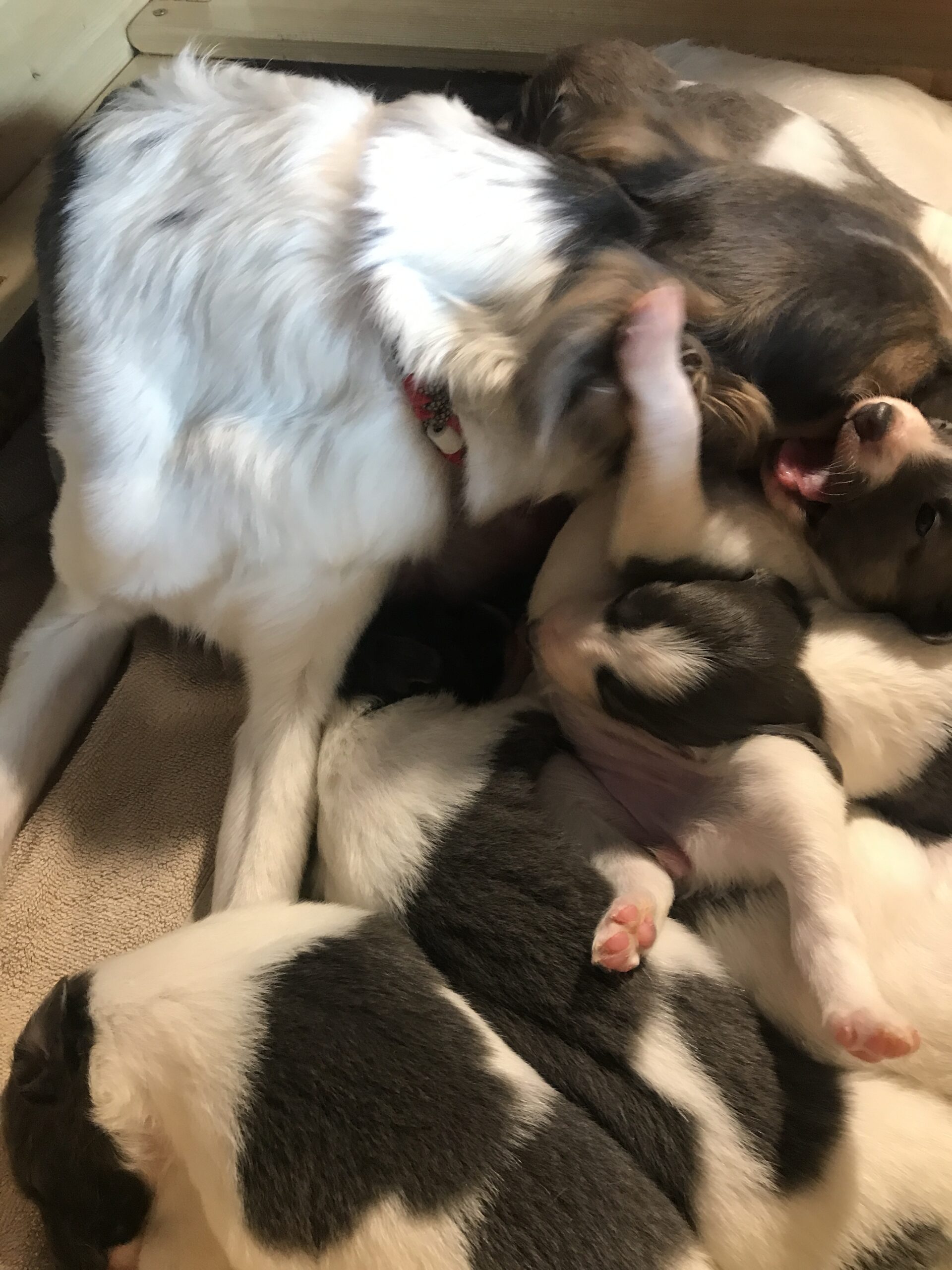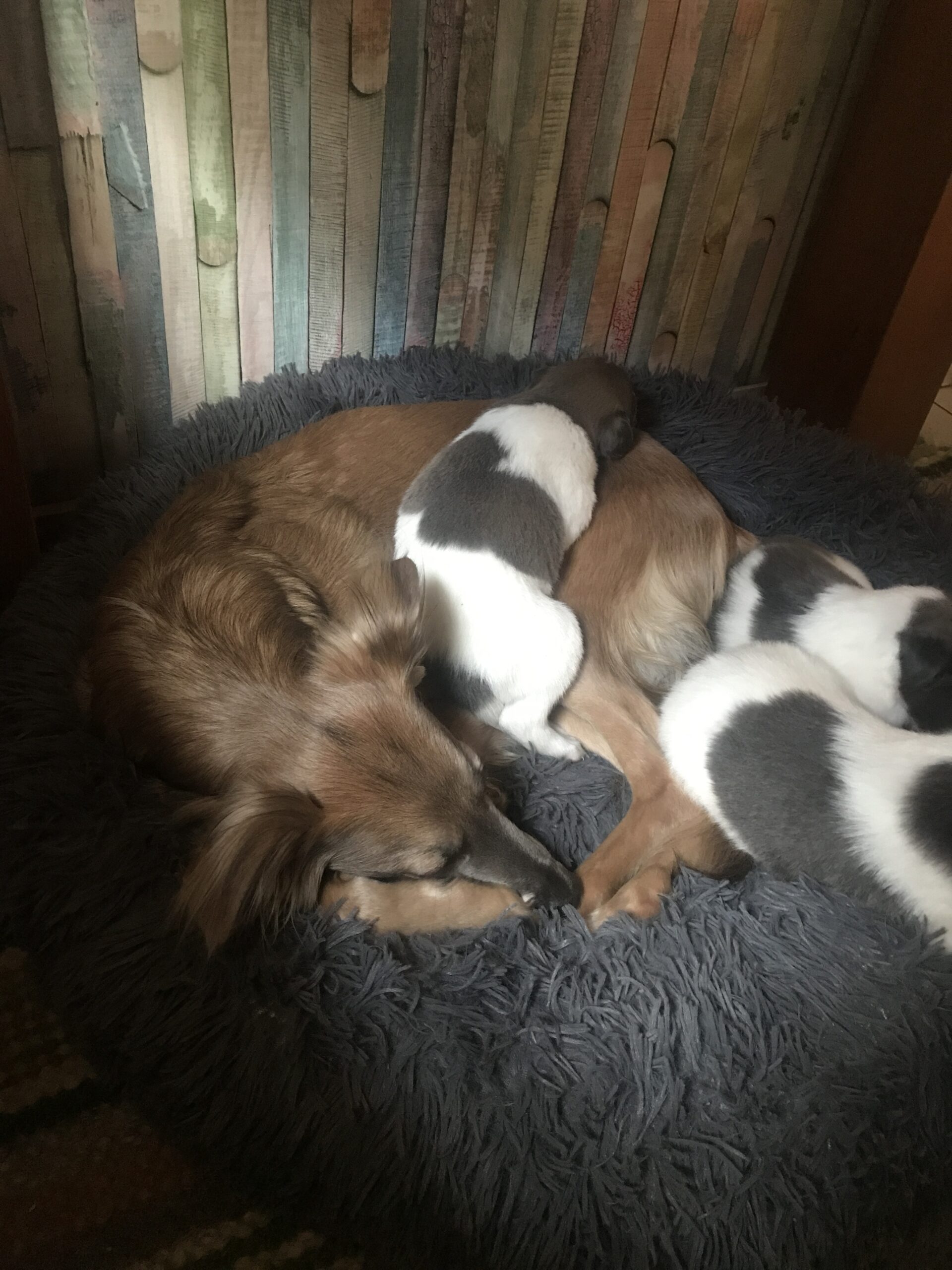 Meinen kleinen Schätze sind jetzt schon groß und in weiteren vier Wochen schon fast wieder in ihren neuen Familien zuhause. Luise genießt ihr Leben öfter ganz alleine ohne die kleinen Nimmersatt Dinger und die Zwerge haben ihre Ersatznahrung, Welpenbrei, gut vertragen. Sie haben einen gesunden Appetit und entwickeln sich auch demensprechend. In einer Woche ist das laufen richtig sicher geworden und die Türe an ihrem Laufgitter MUSS offen sein sonst ist nicht genug Platz und das wird lautstark verkündet. Sie werden jetzt richtig süss. Wenn ich sie rufe kommen sie angedüst und freuen sich mit dem ganzen Körper. Allerdings wird mein putzen auch umfangreicher, sie sind eben überall, nur kaum noch in ihrer Wurfkiste. Ich freue mich auf die neue Woche und auf neue Erkundungsreisen mit den Zwergen.